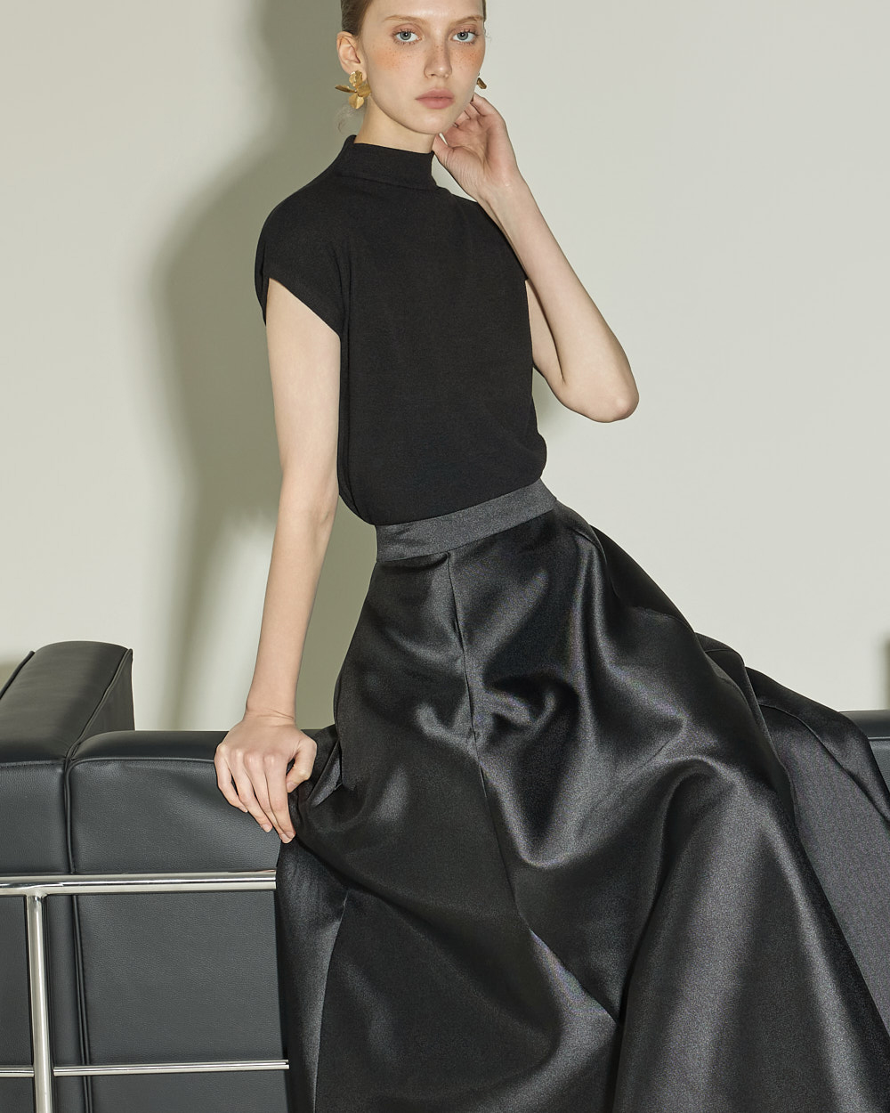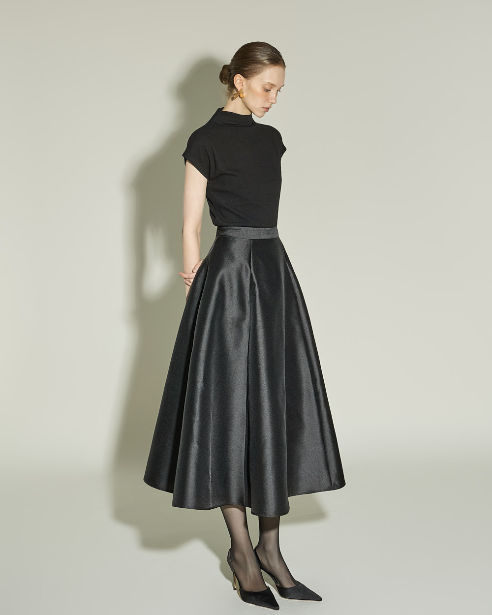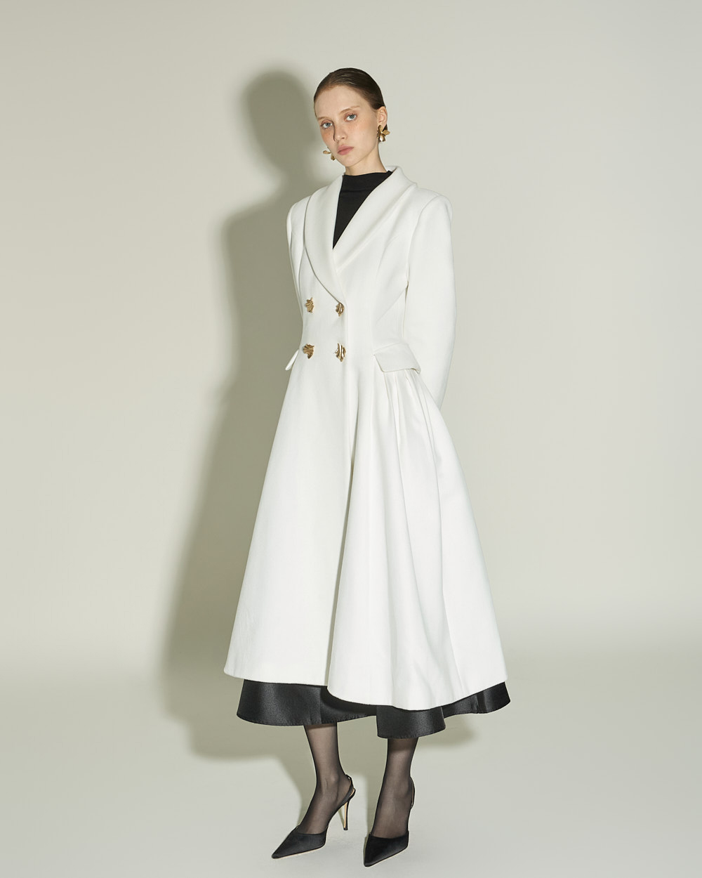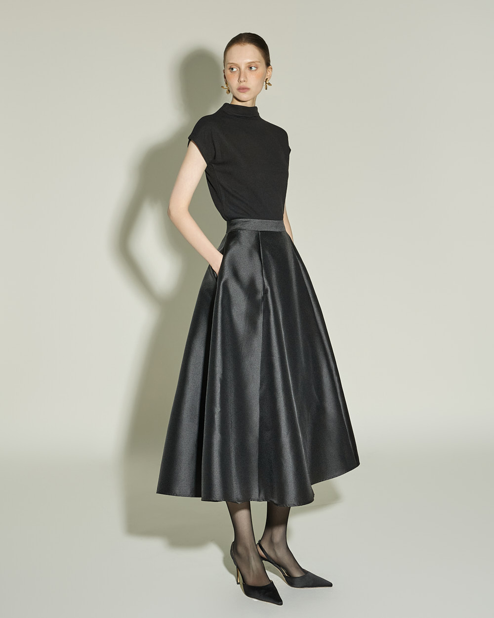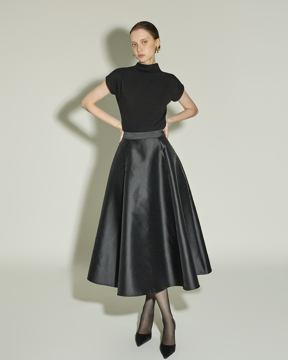 슬림하게 떨어지는 실루엣과 캡소매 디테일이