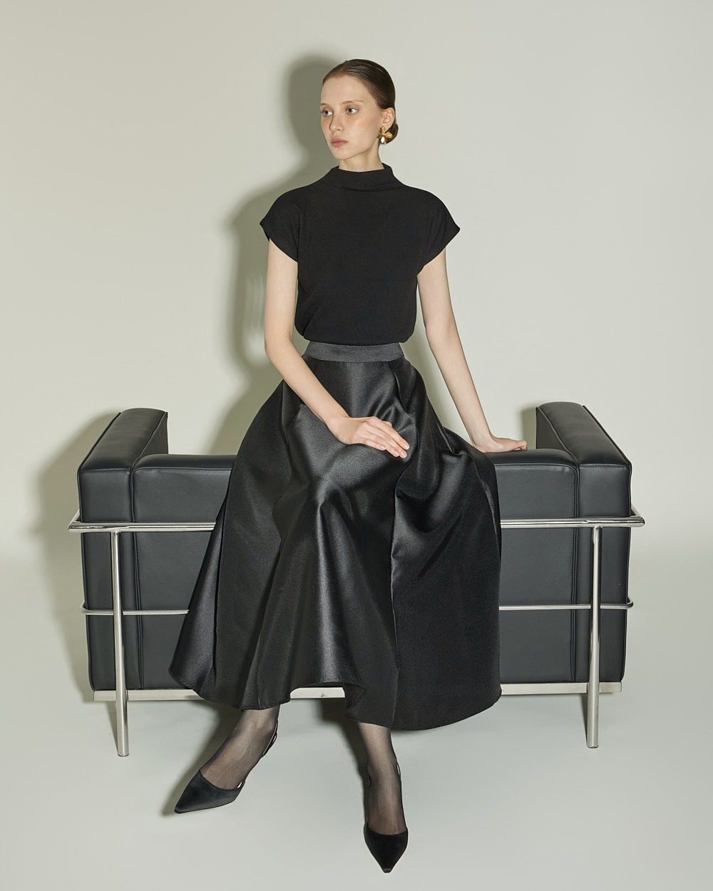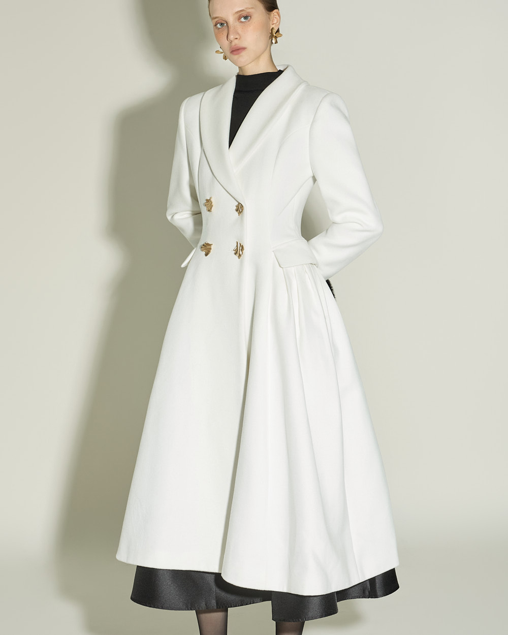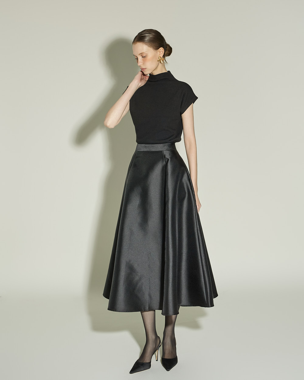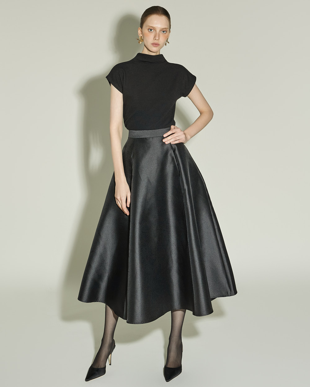 슬림하게 떨어지는 실루엣과 캡소매 디테일이