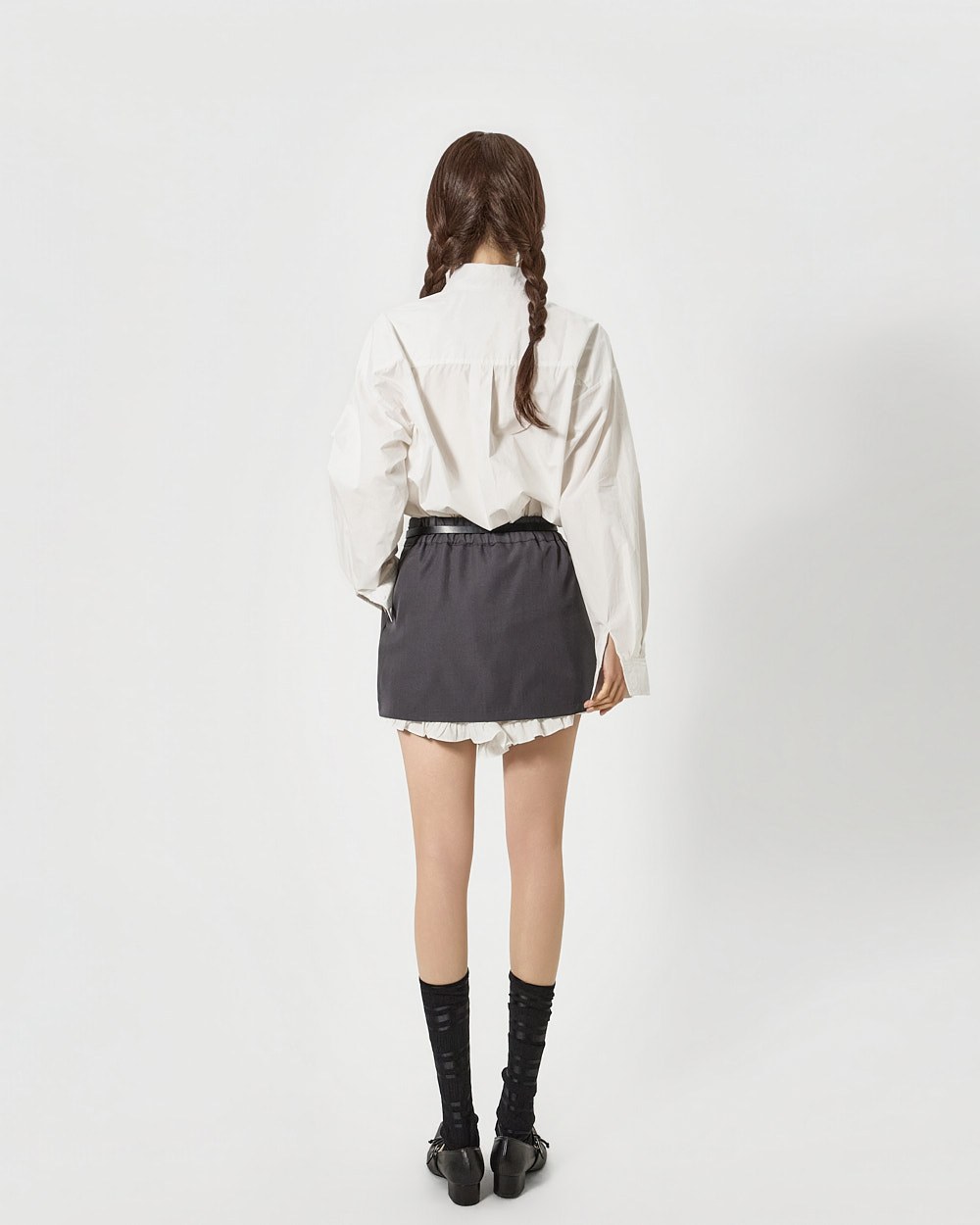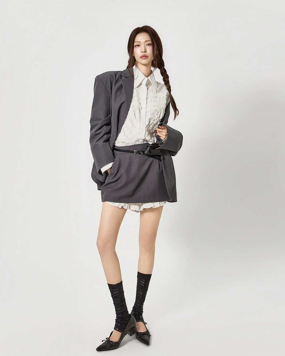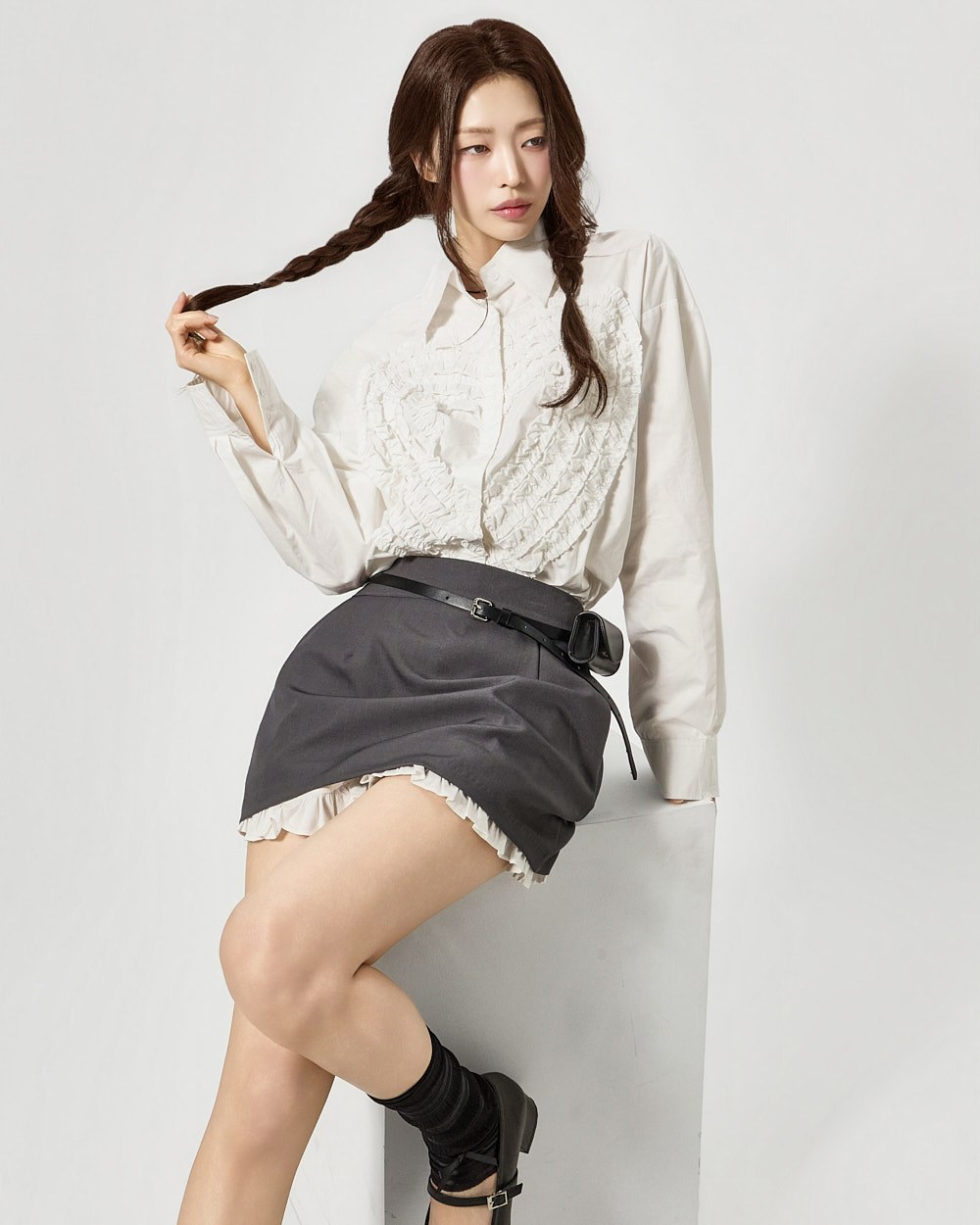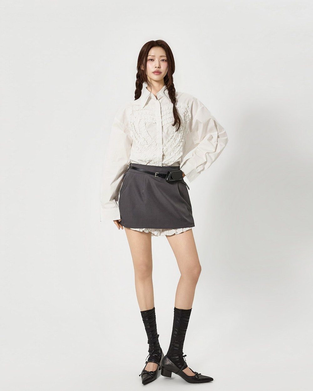전면에 더해진 프릴 디테일이 하트 형태로 표현되어