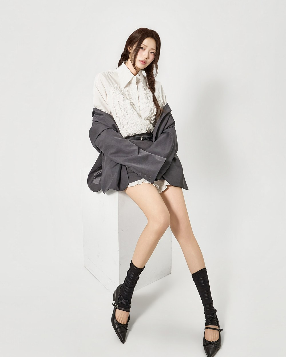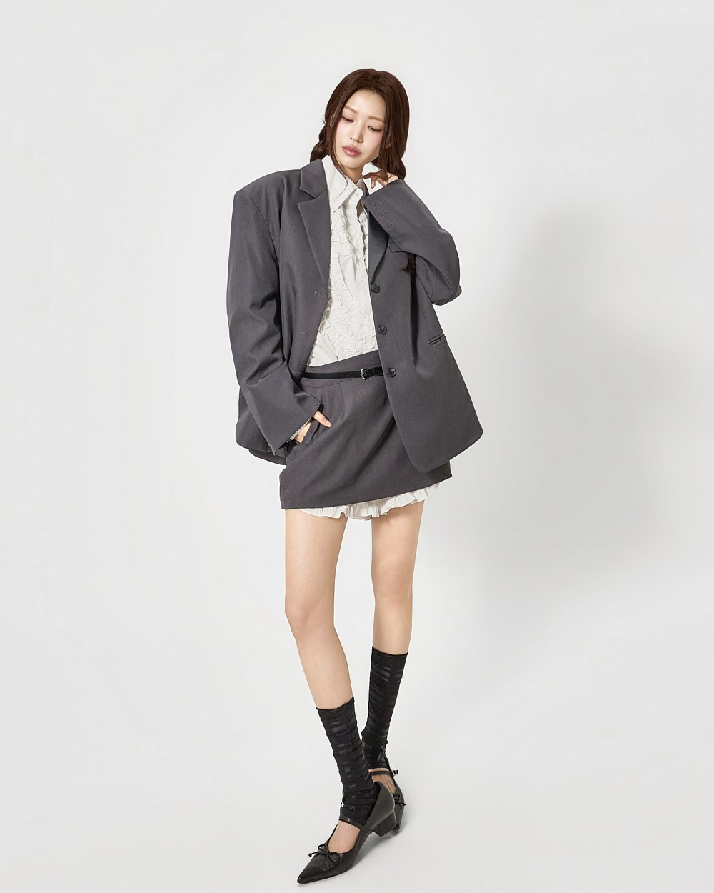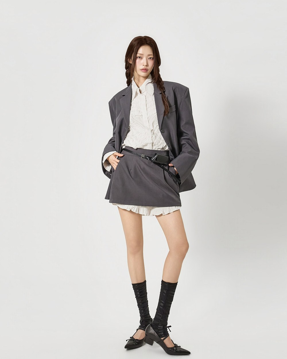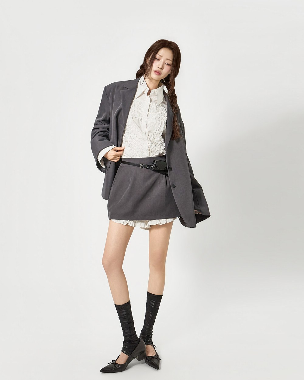 전면에 더해진 프릴 디테일이 하트 형태로 표현되어