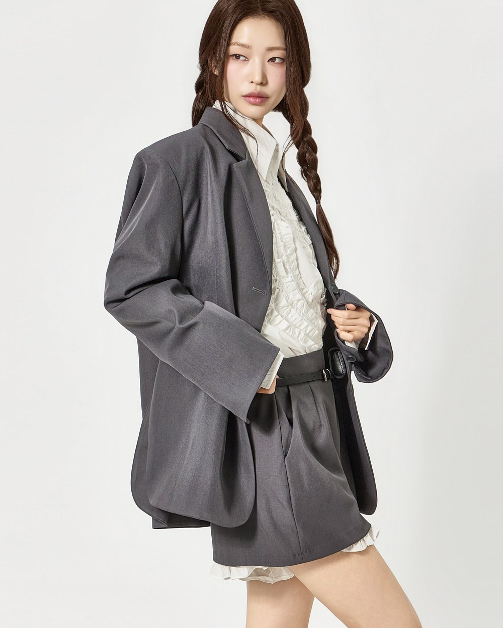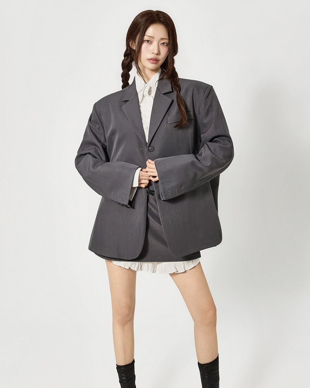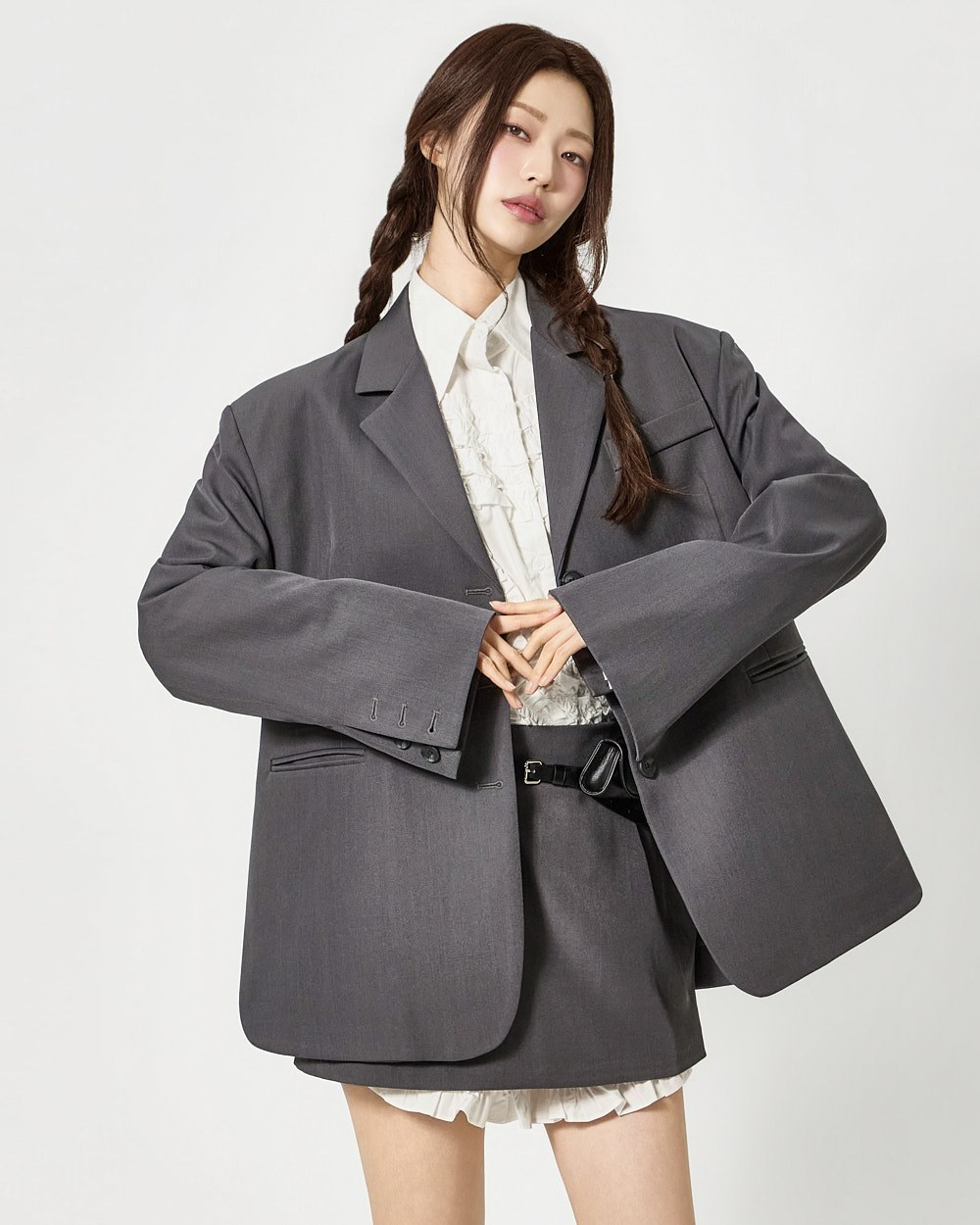 전면 단추 여밈으로 간편한 오픈 클로징이 가능하며,