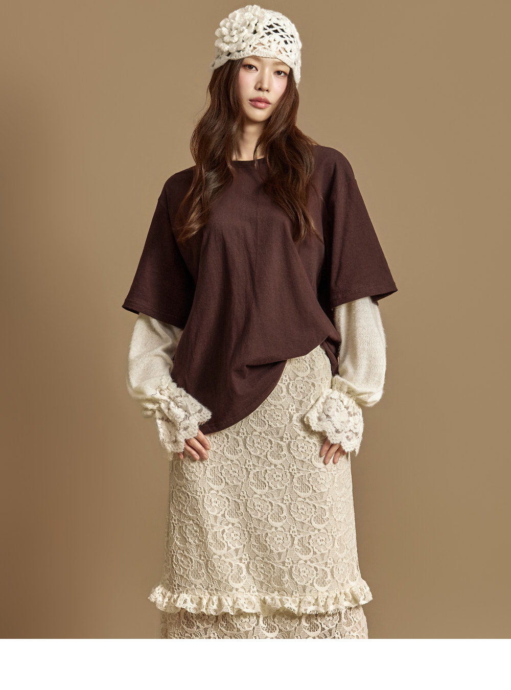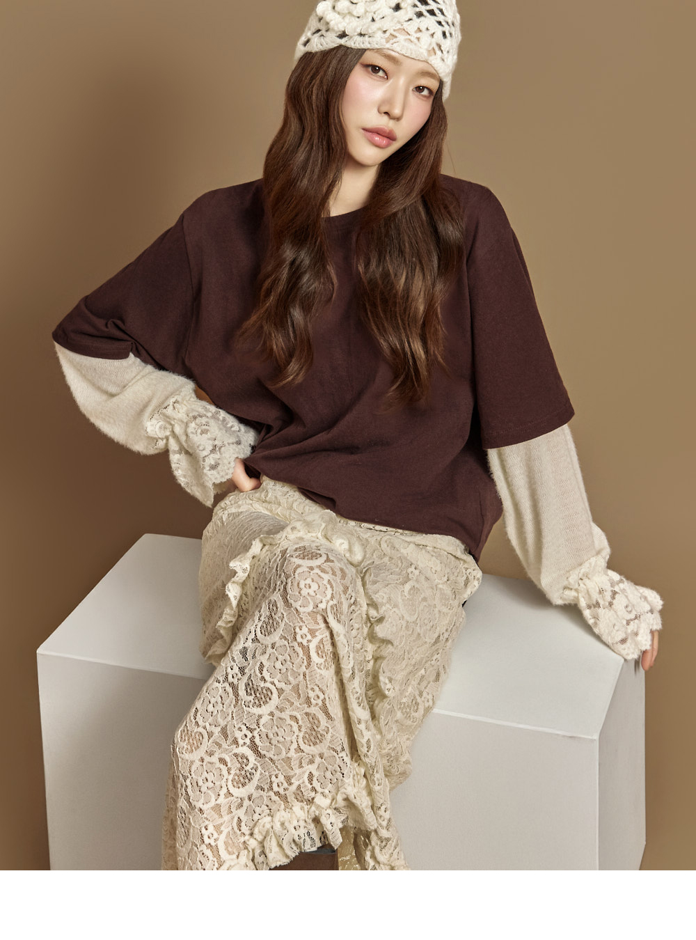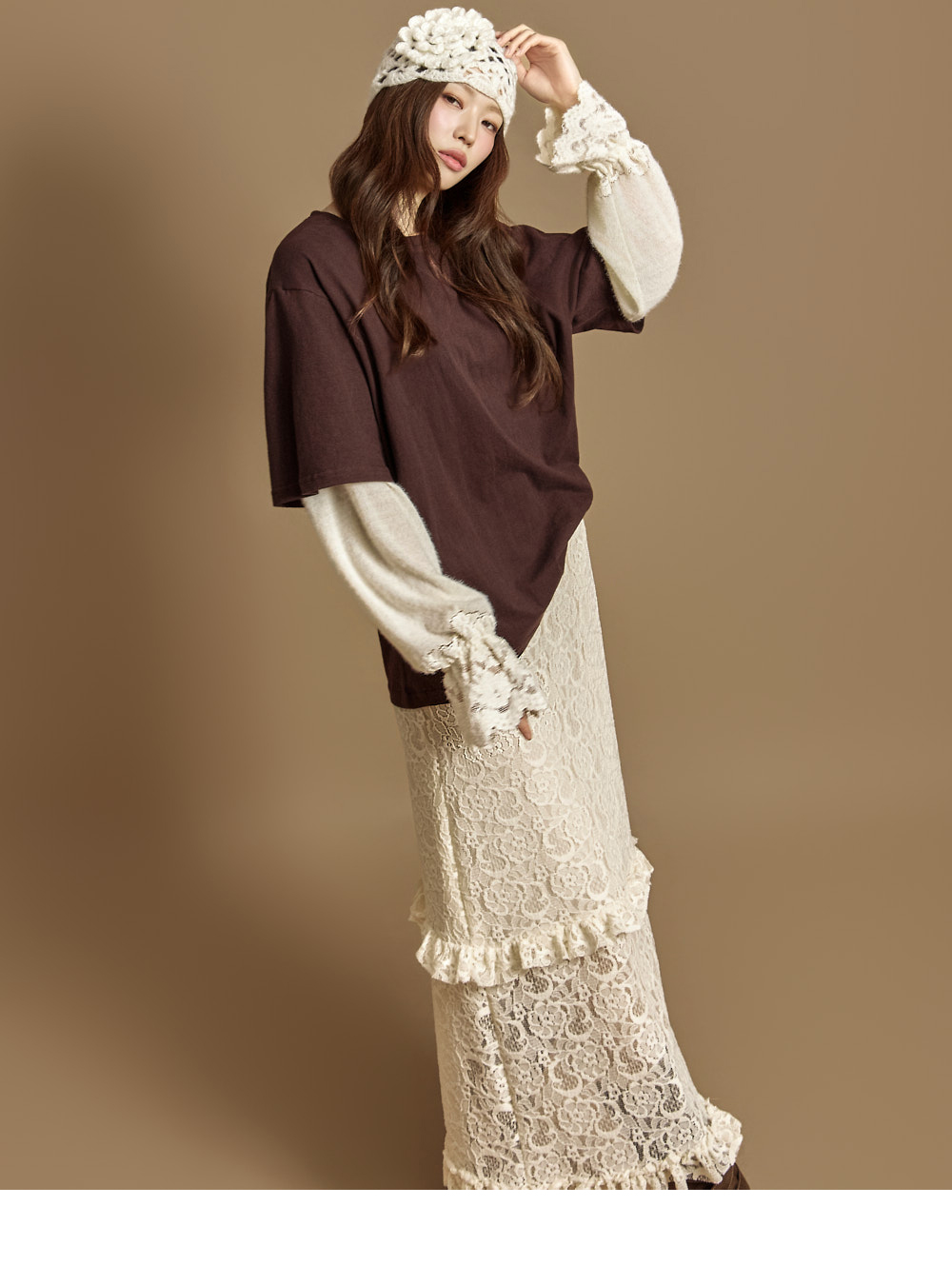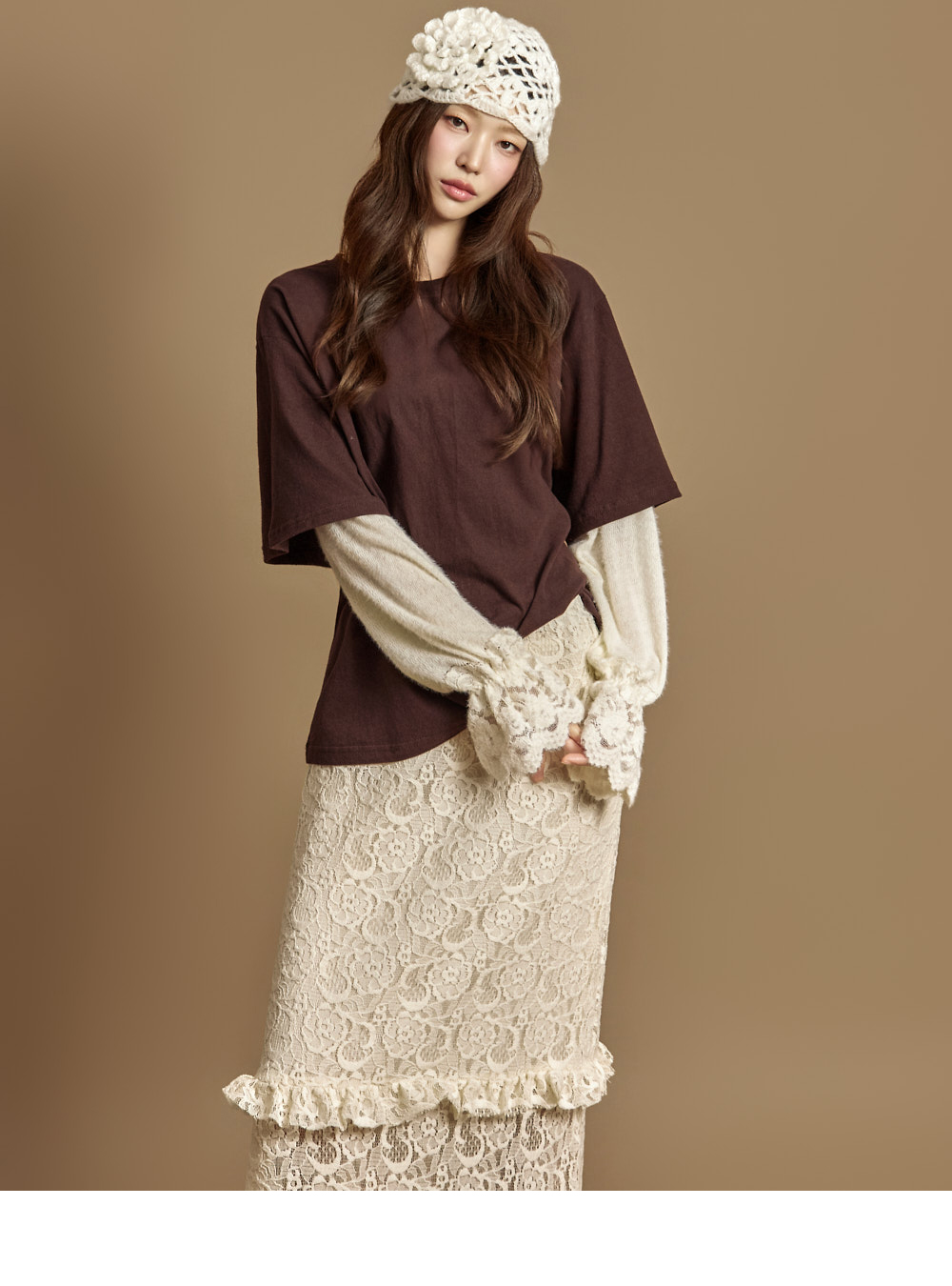 러블리한 무드의 레이스 레이어드 탑입니다.