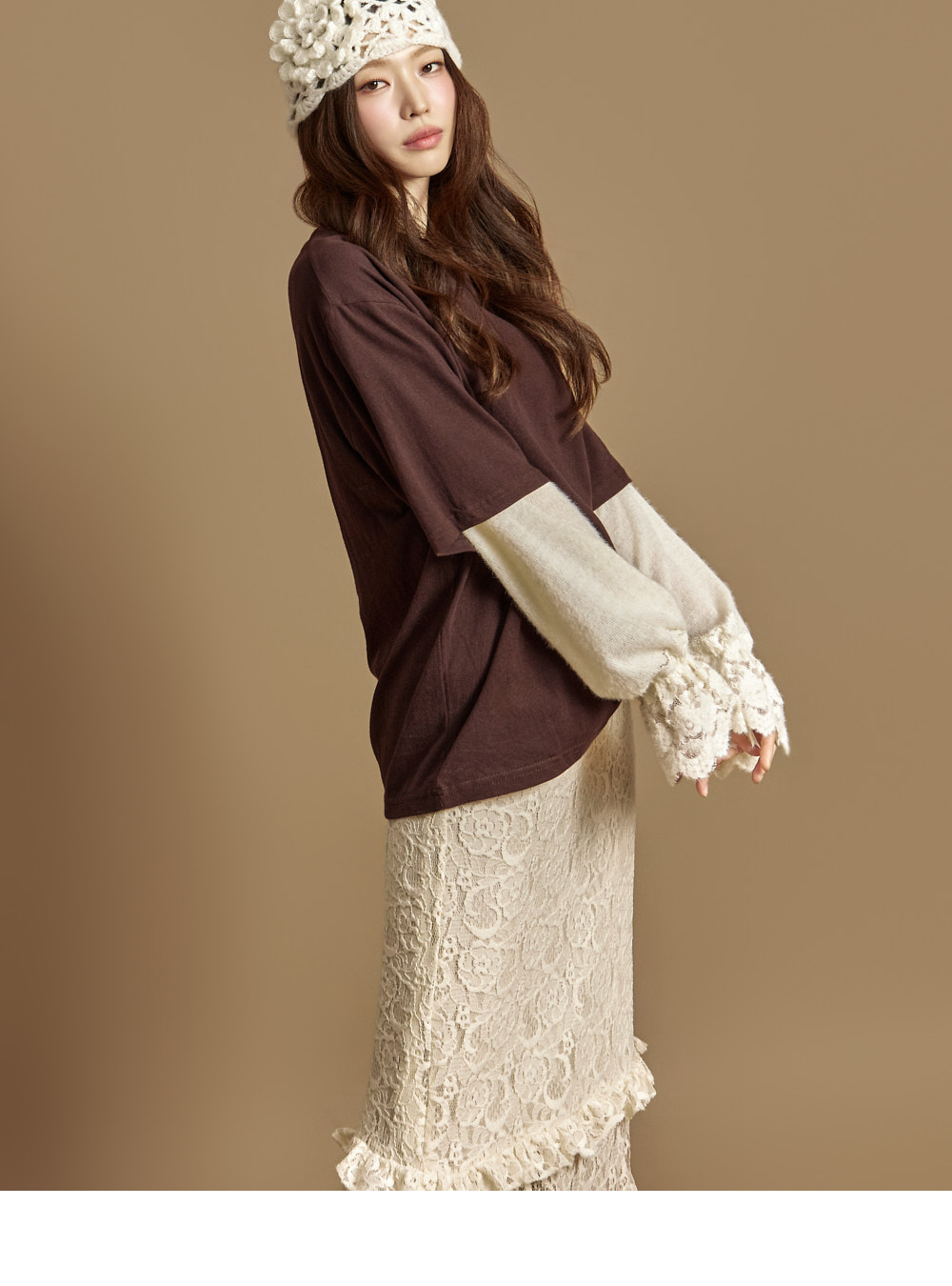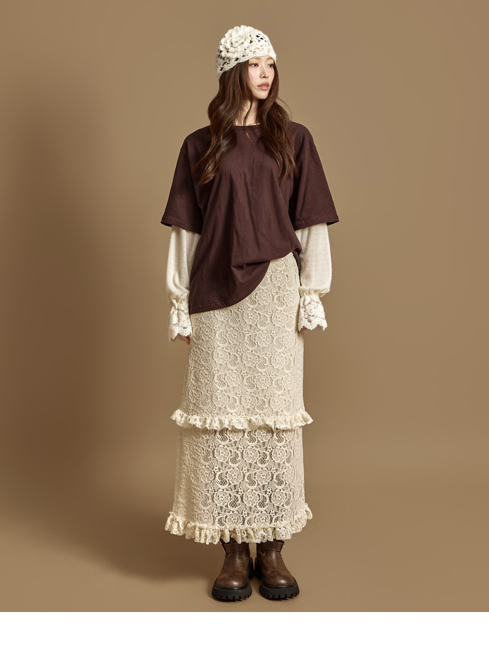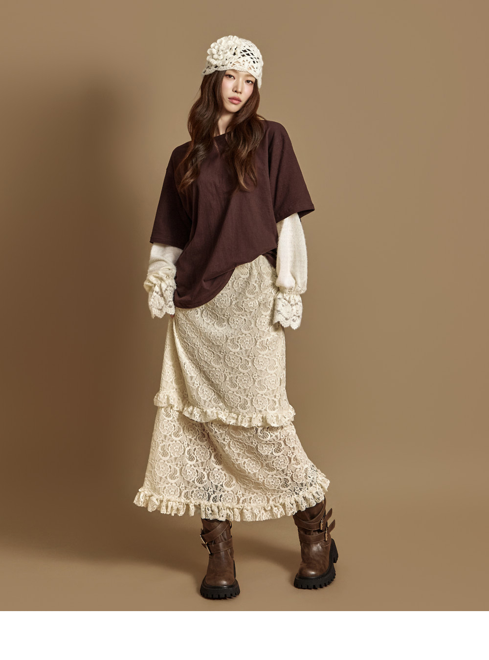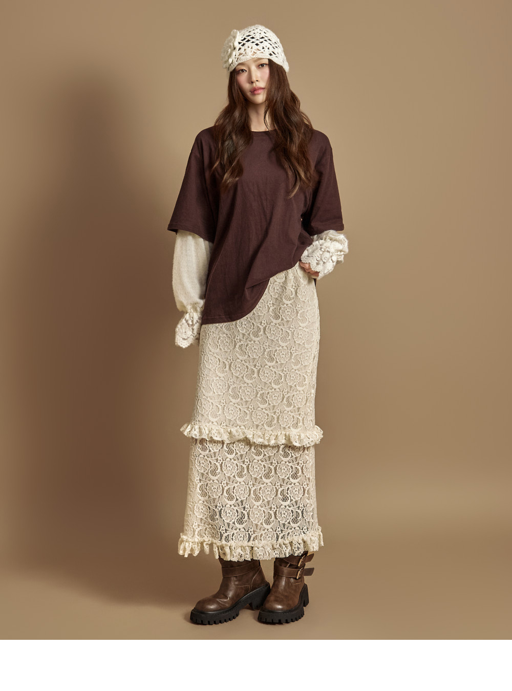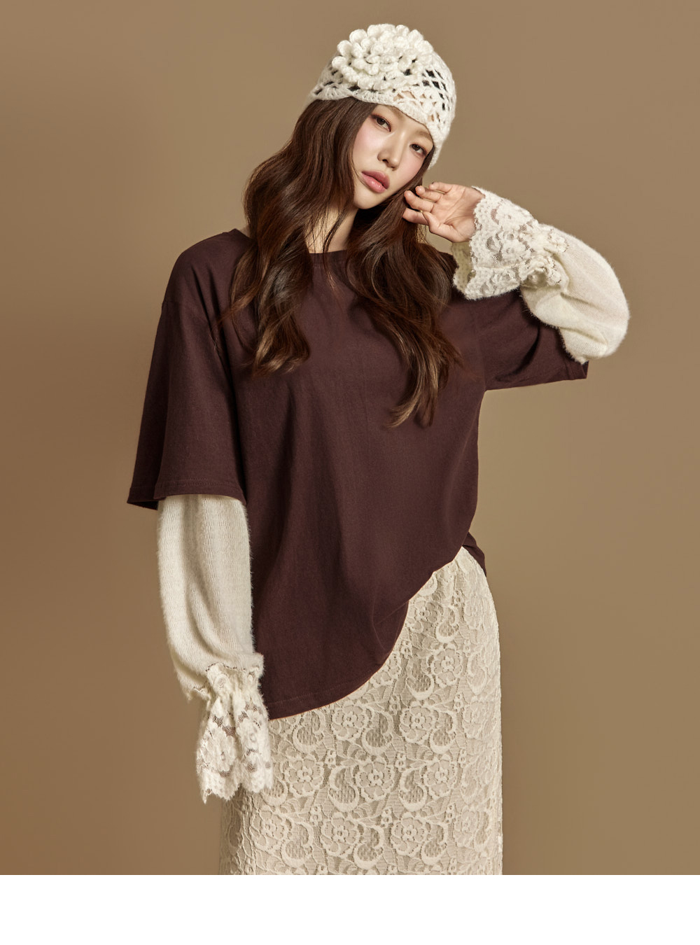 러블리한 무드의 레이스 레이어드 탑입니다.