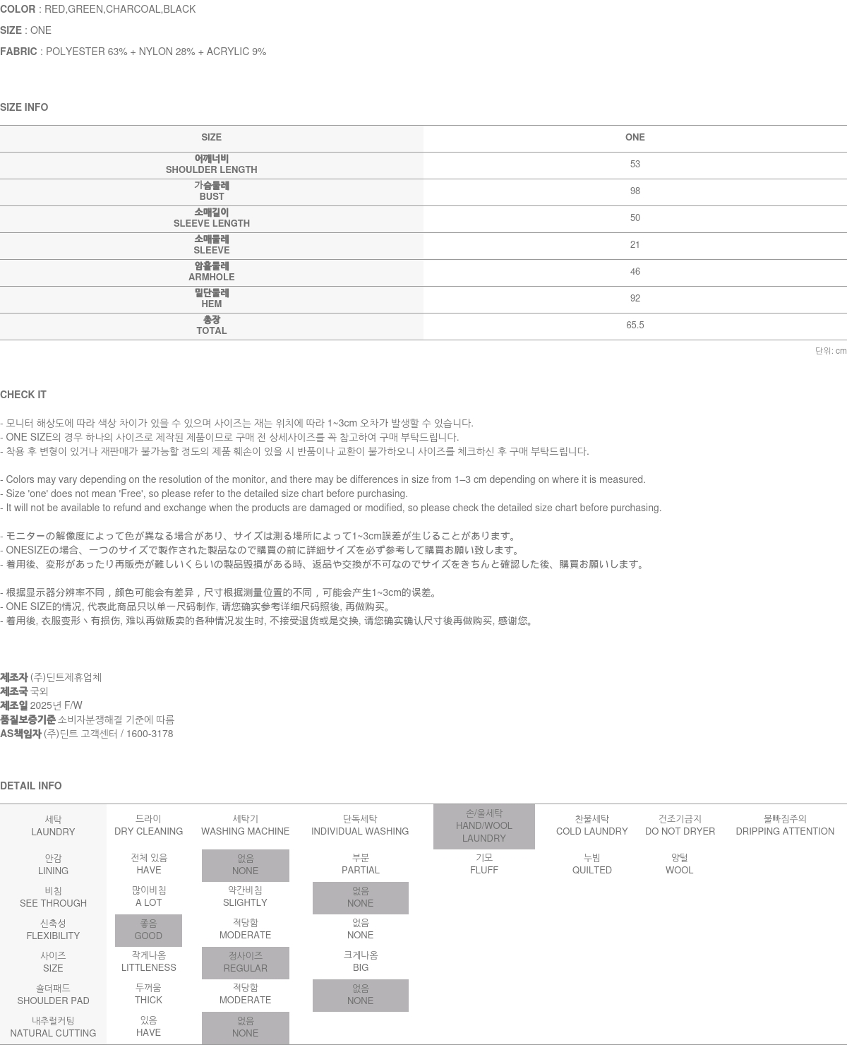 171CM 모델 ONE 사이즈, RED 컬러 착용하였습니다.