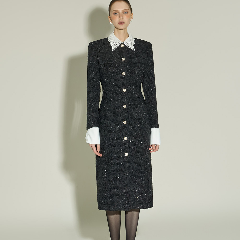 페미닌한 무드가 돋보이는 트위드 원피스입니다.