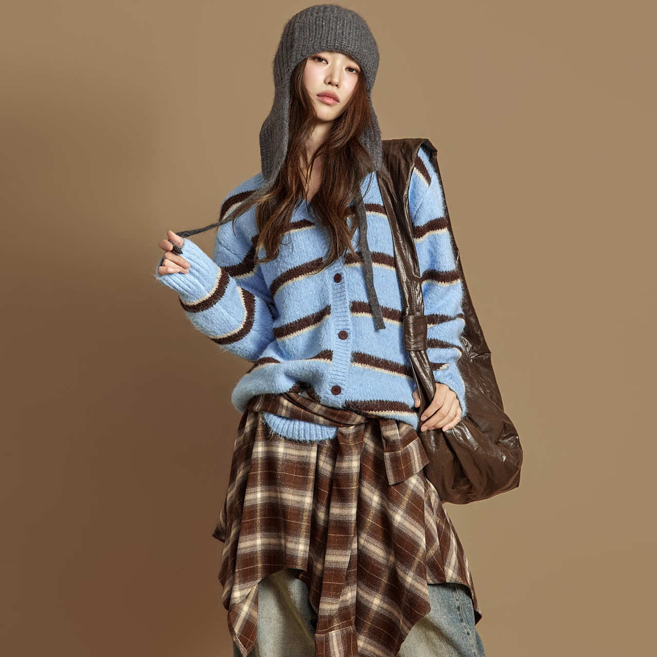 캐주얼한 무드의 스트라이프 울 가디건입니다.
