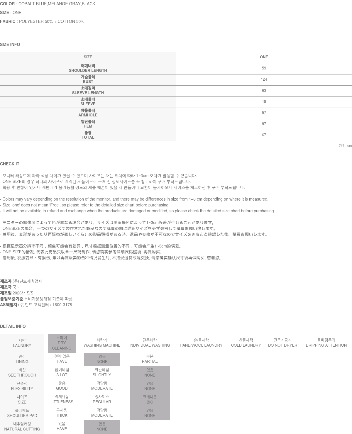 171CM 모델 ONE 사이즈, MELANGE GRAY 컬러 착용하였습니다.