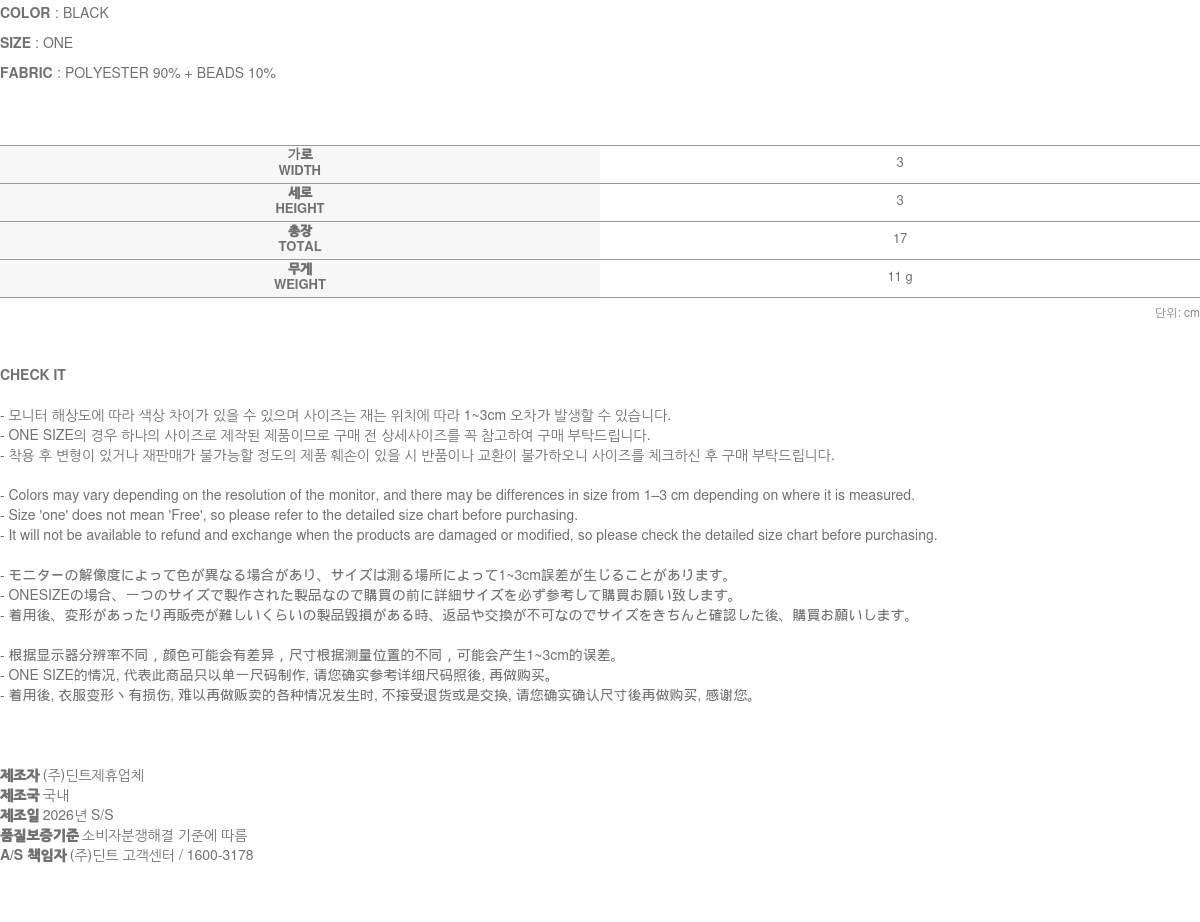 • 액세서리 및 잡화는 장시간 보관 및 착용 시 변색이나 변형이 될 수 있습니다.
