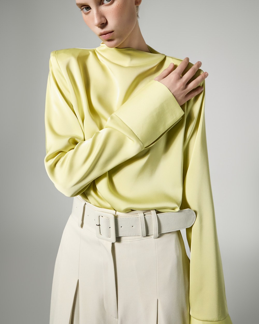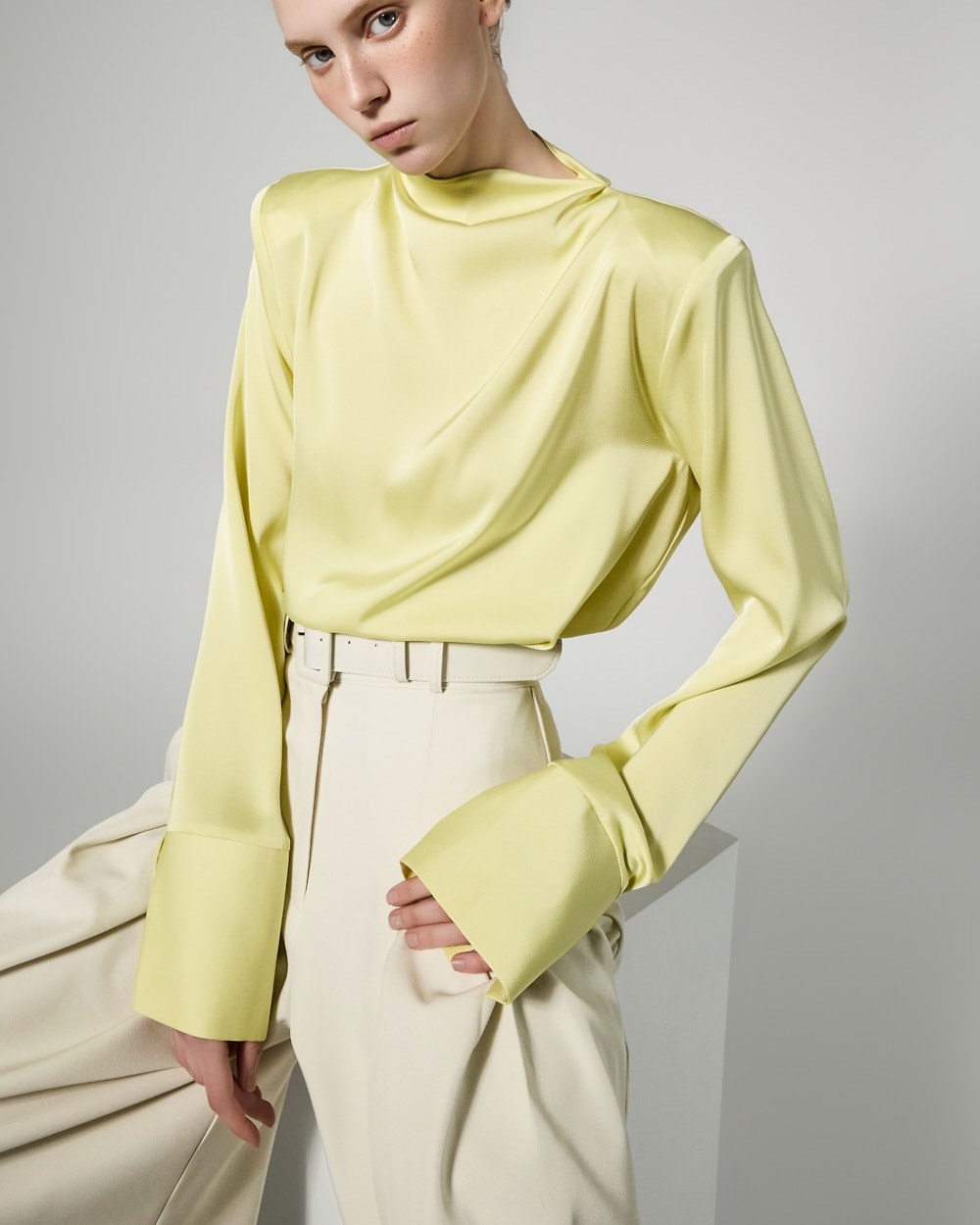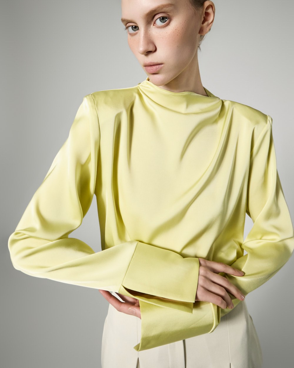 우아하고 고급스러운 무드의 넥 드레이프 블라우스입니다.