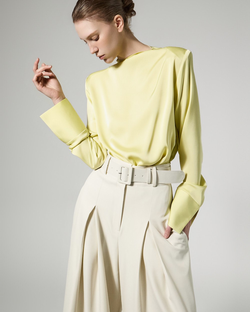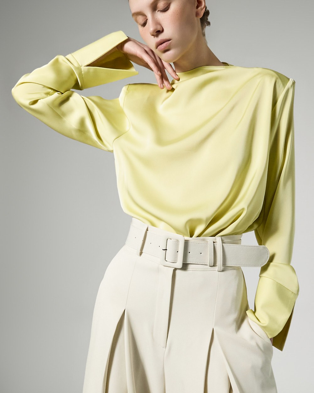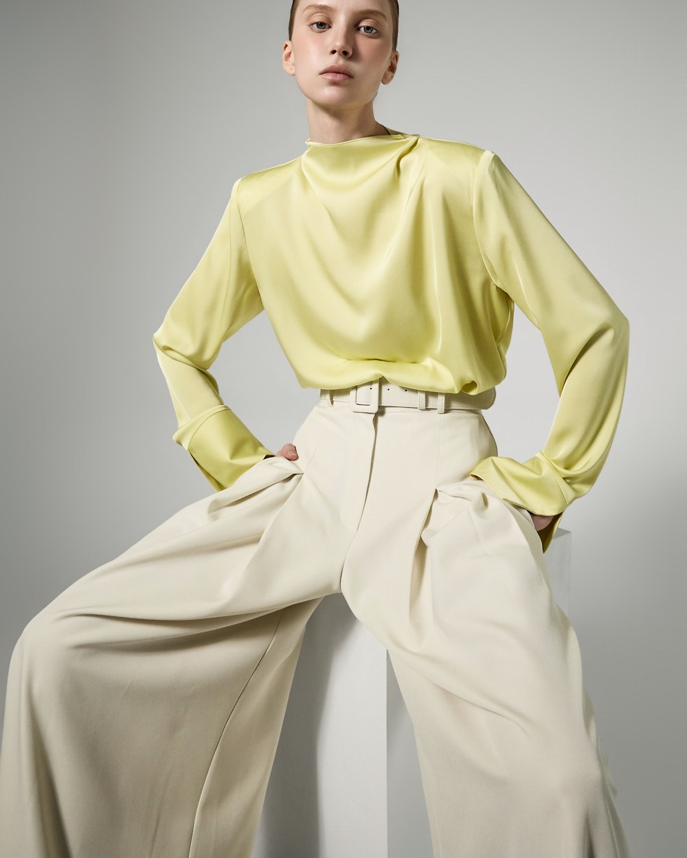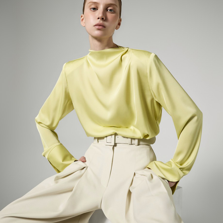 우아하고 고급스러운 무드의 넥 드레이프 블라우스입니다.