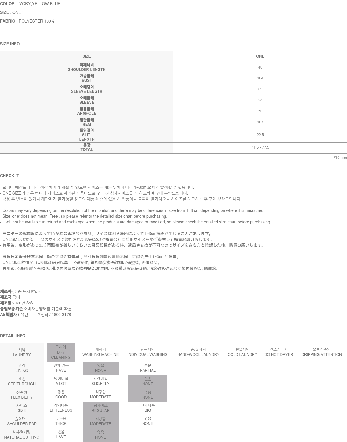 174CM 모델 ONE 사이즈, YELLOW 컬러 착용하였습니다.