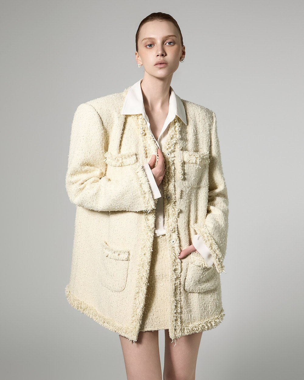 입체적인 조직감이 살아 있는 트위드 원단으로