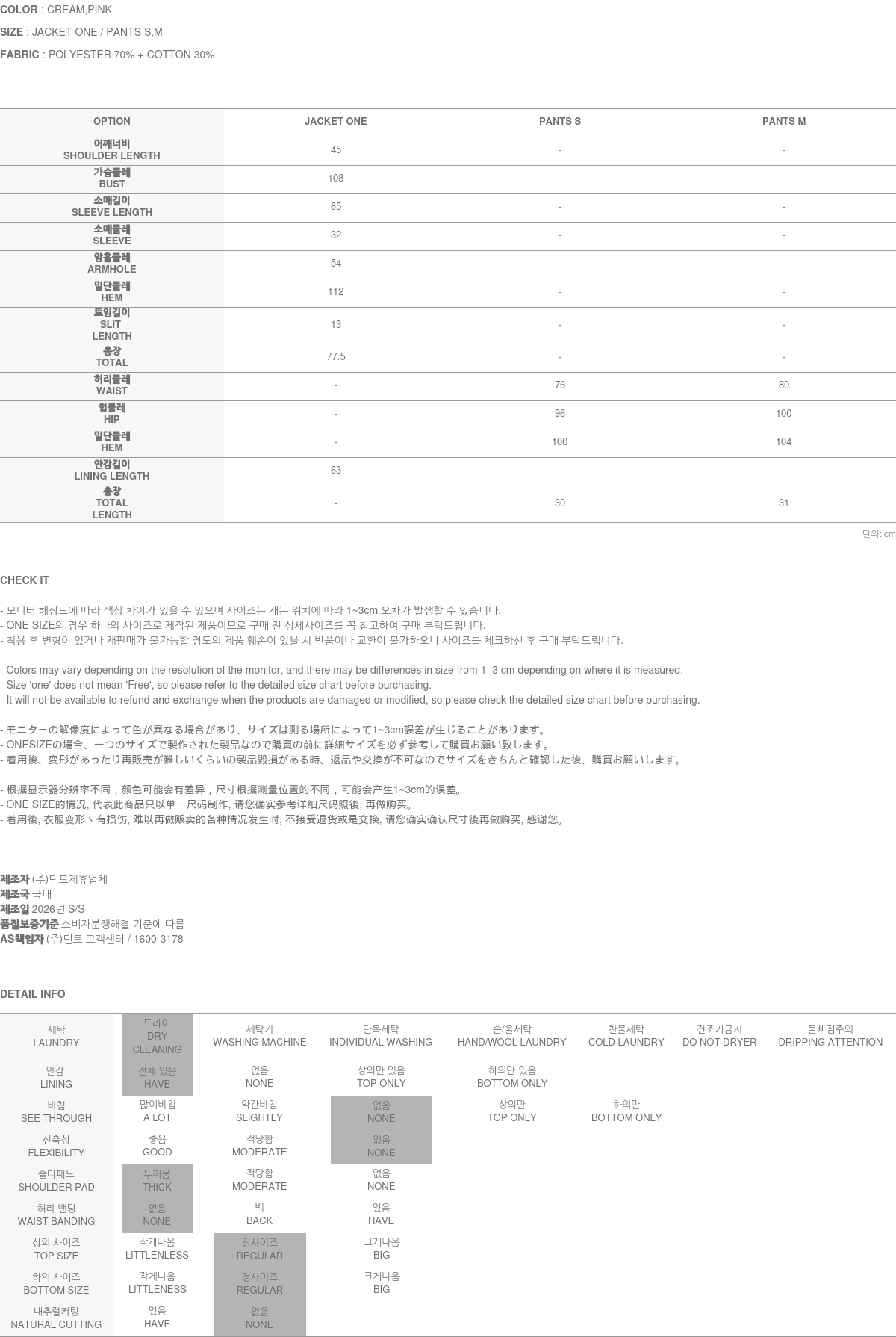 [ SET 할인 구매 상품의 경우 꼭 상,하의를 함께 보내주셔야 교환 및 반품처리가 가능합니다. ]