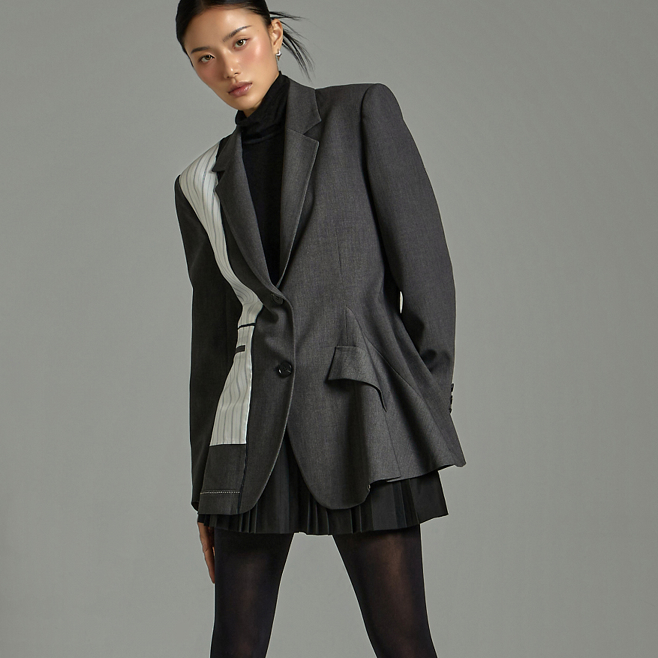 후면 트임과 전면 포켓 디테일로