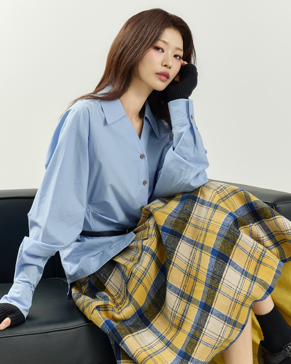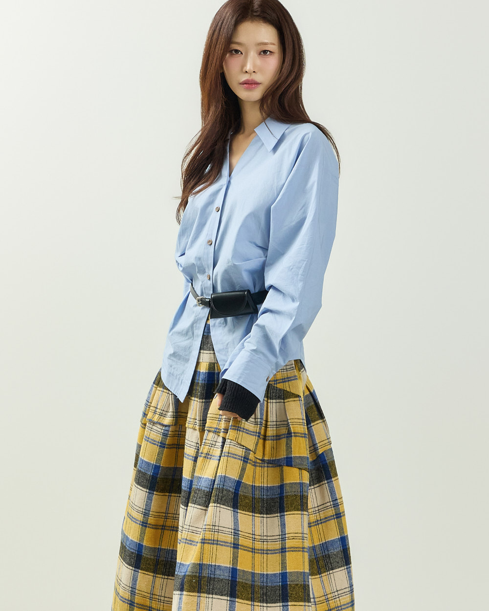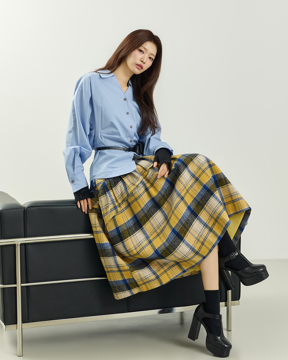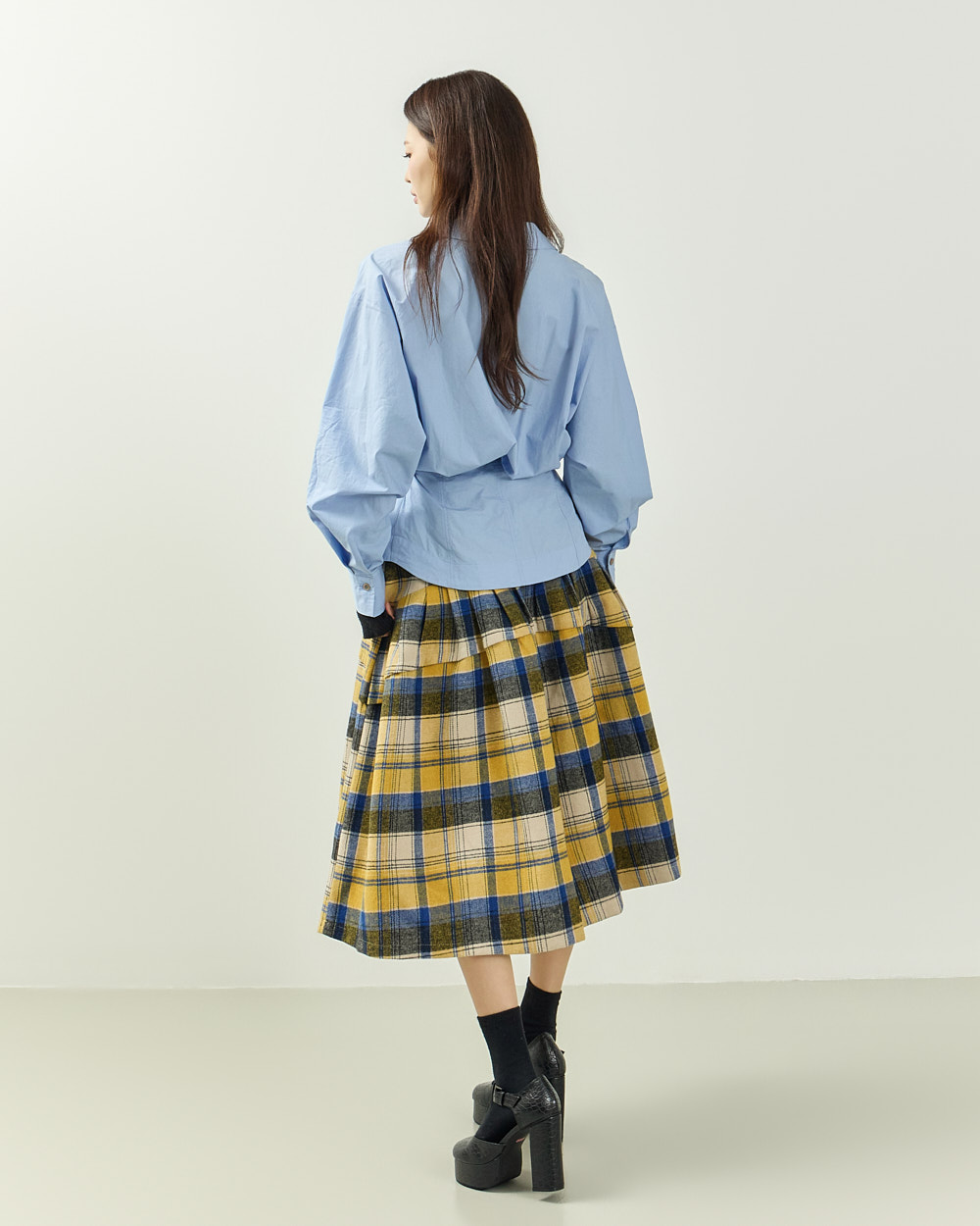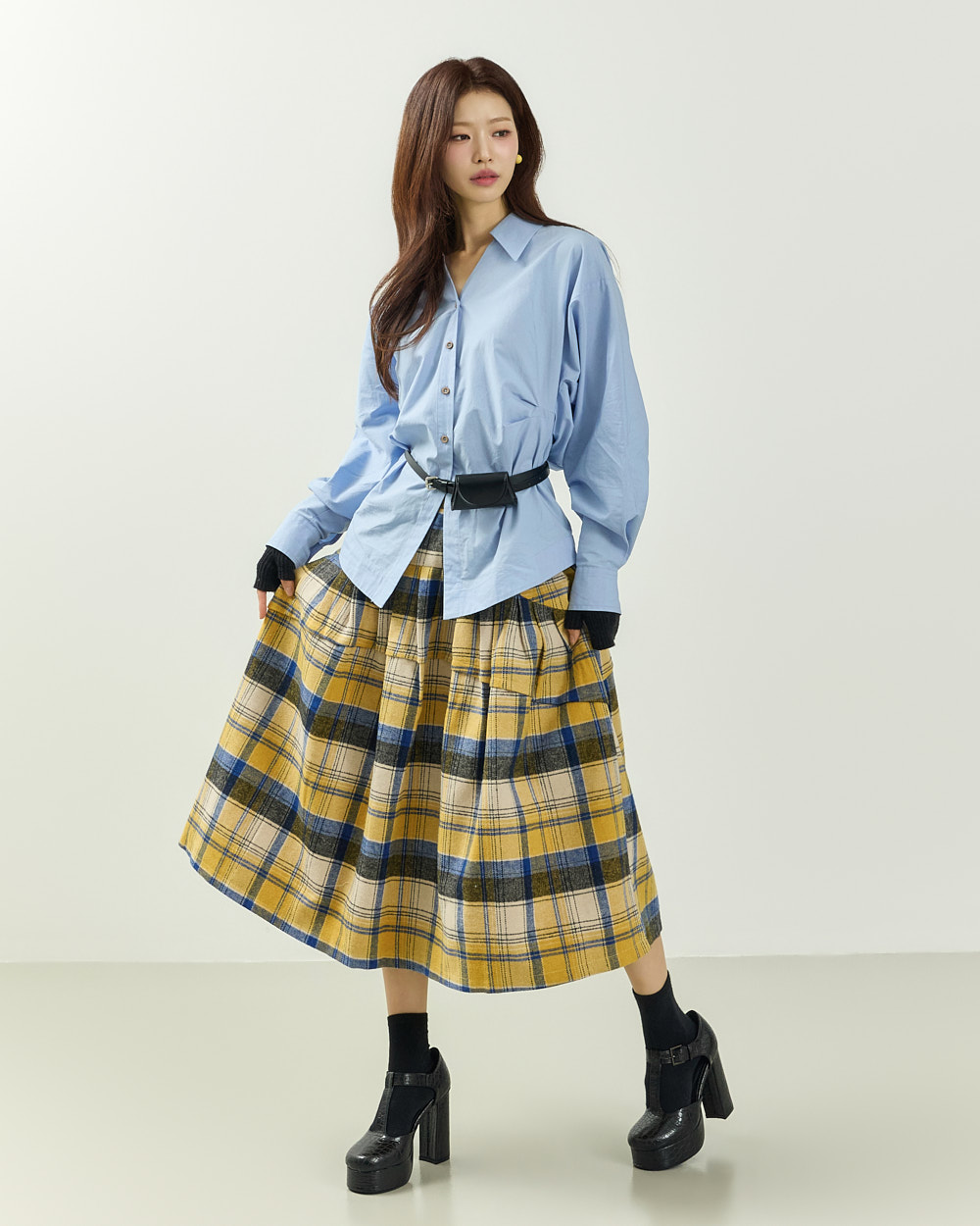 플레어한 실루엣과 미디 기장감이 어우러져