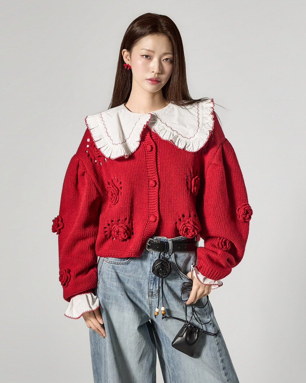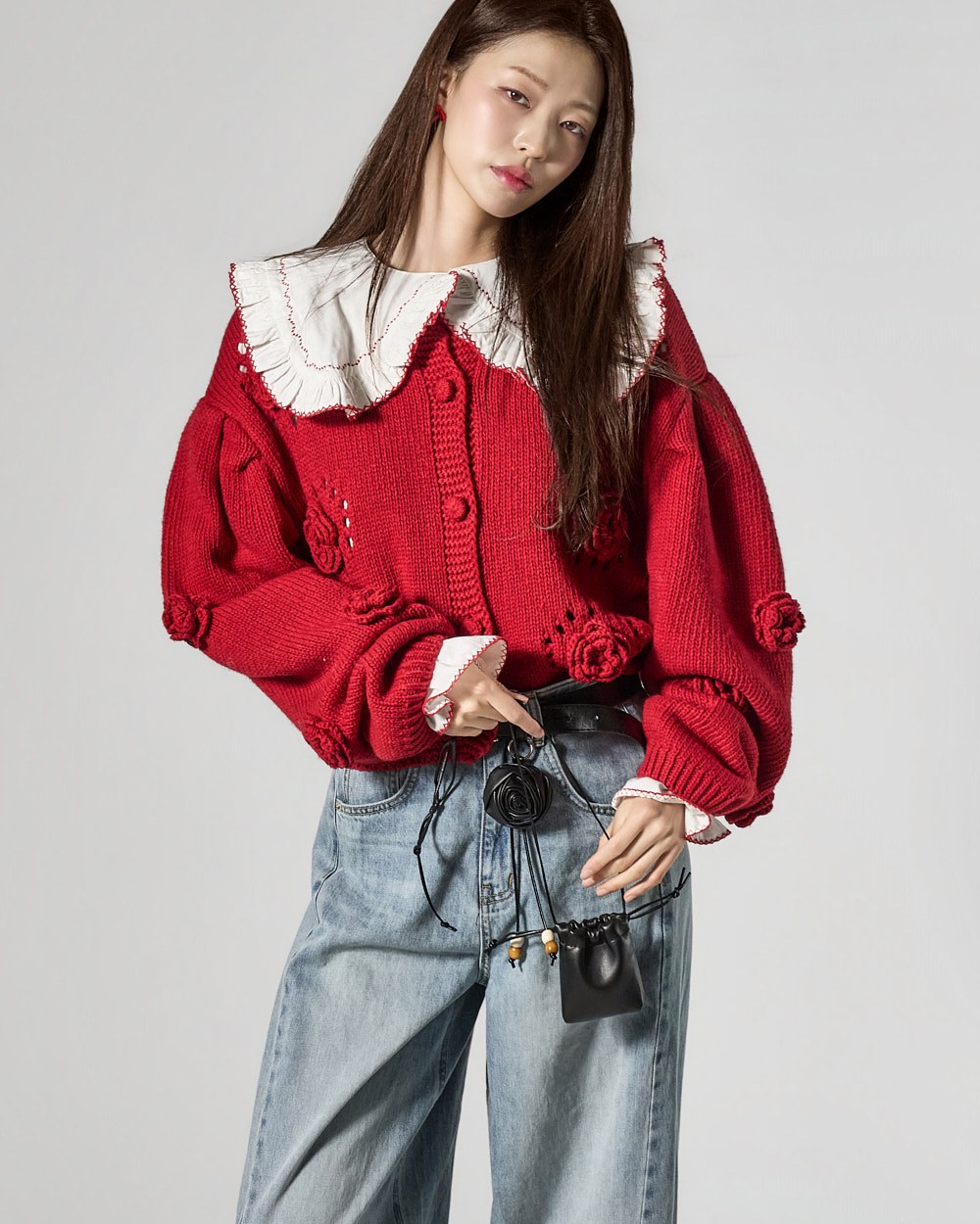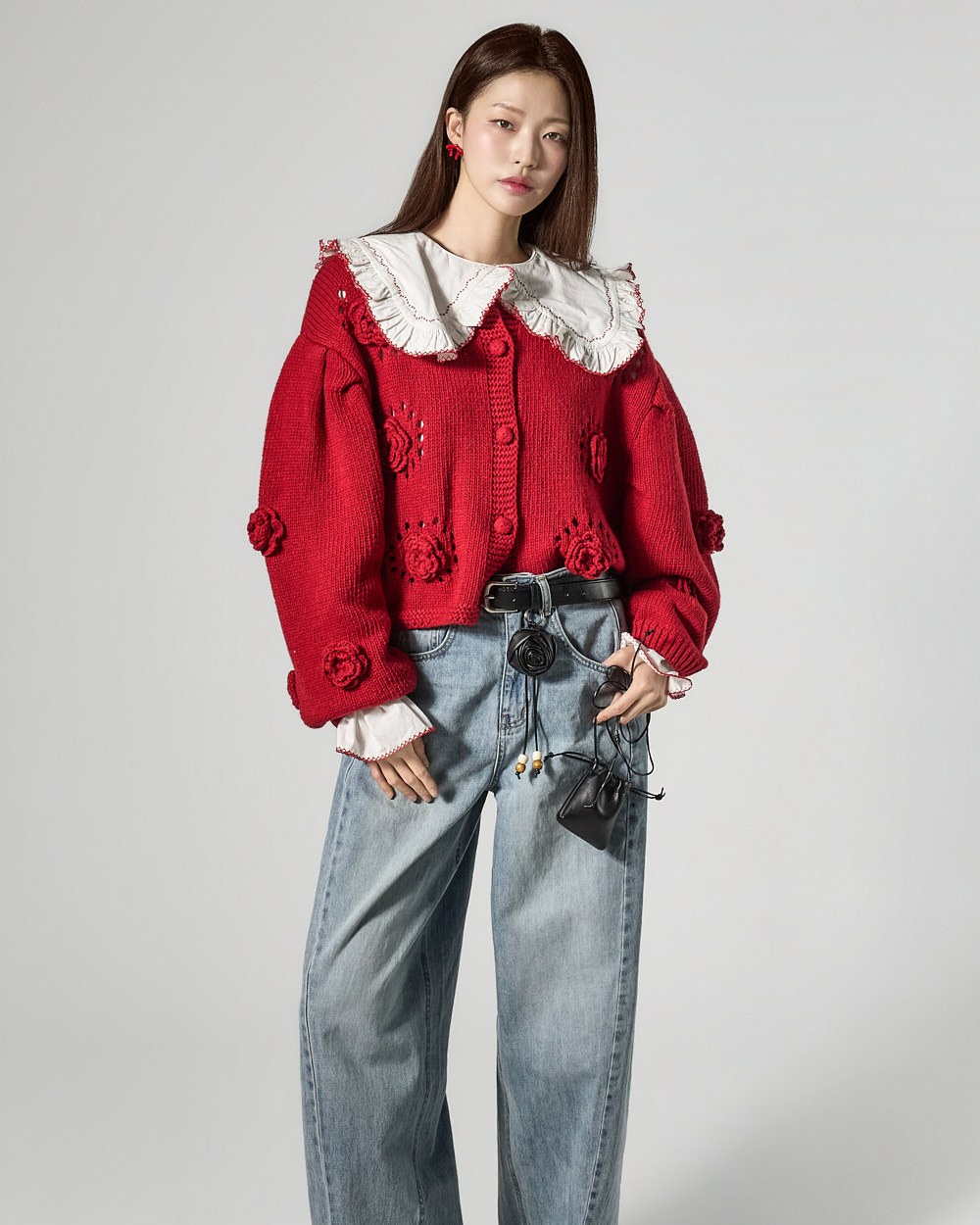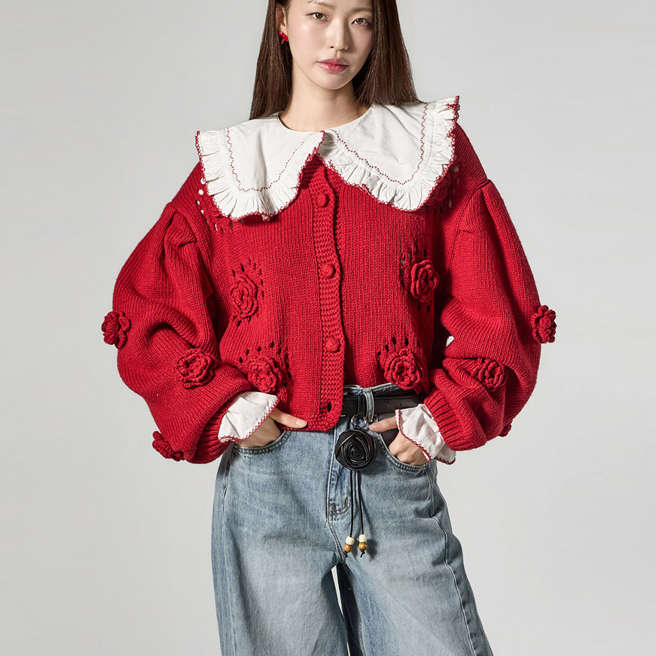캐주얼한 무드의 크로쉐 핸드메이드 가디건입니다.