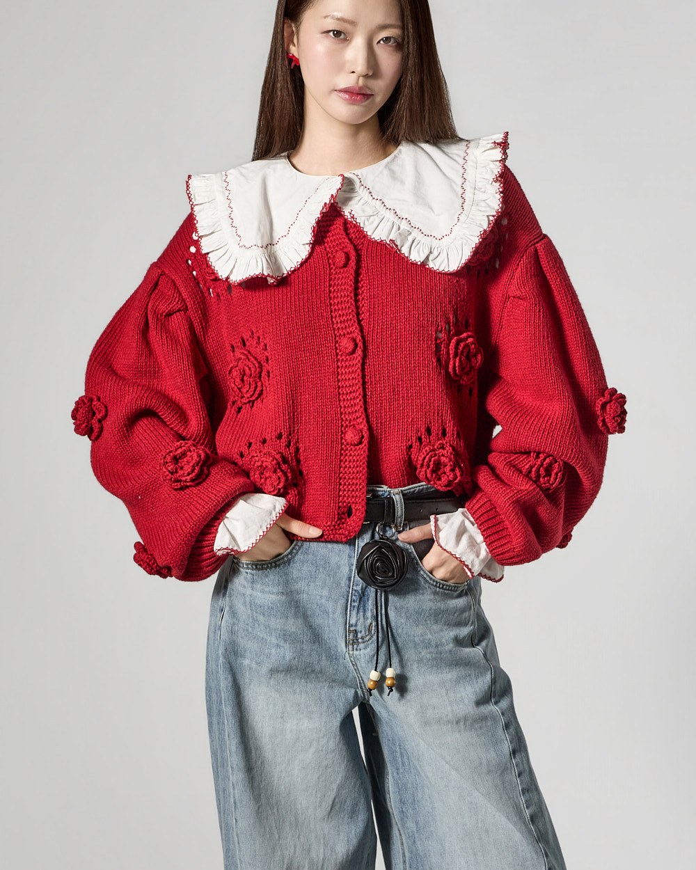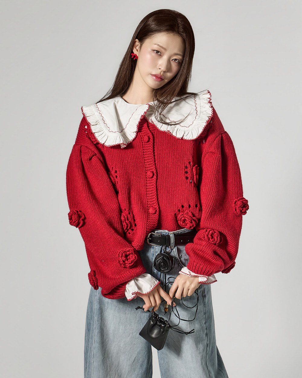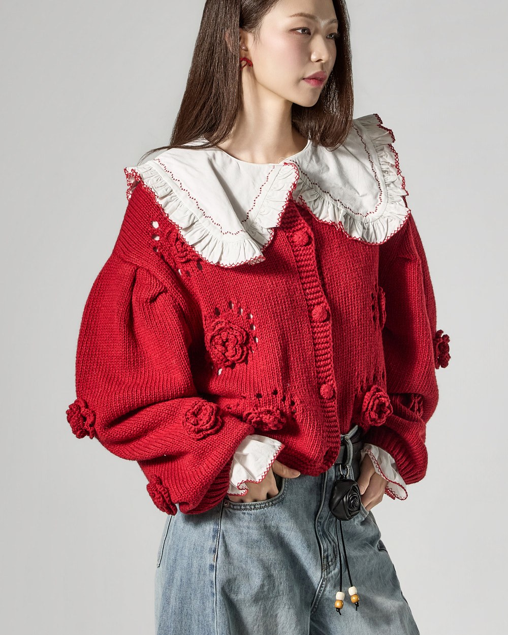 캐주얼한 무드의 크로쉐 핸드메이드 가디건입니다.