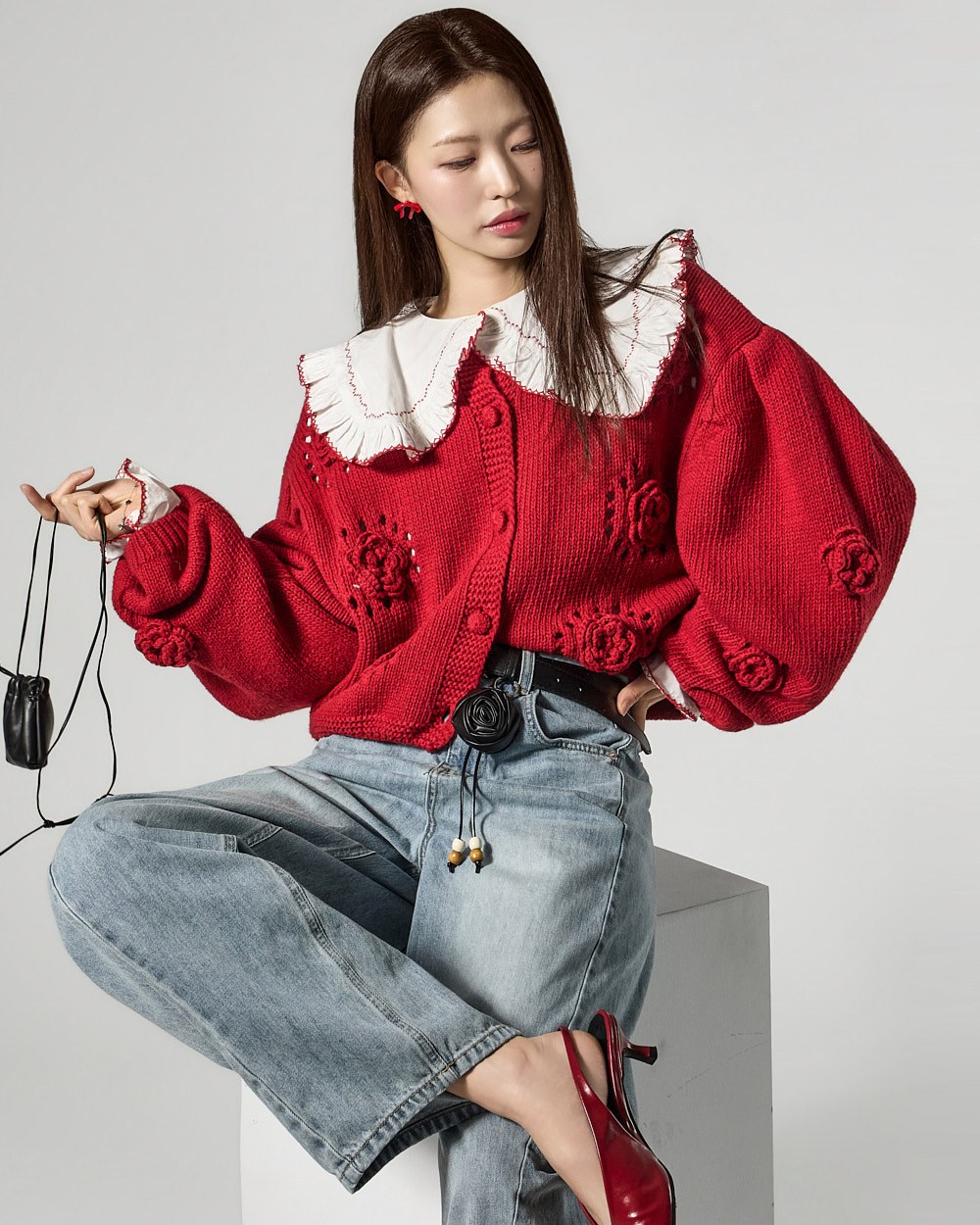 플라워 크로쉐 짜임 디테일이 포인트가 됩니다.