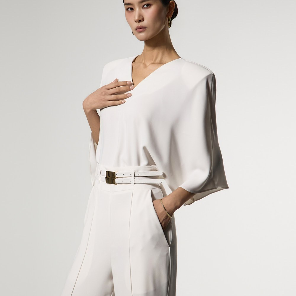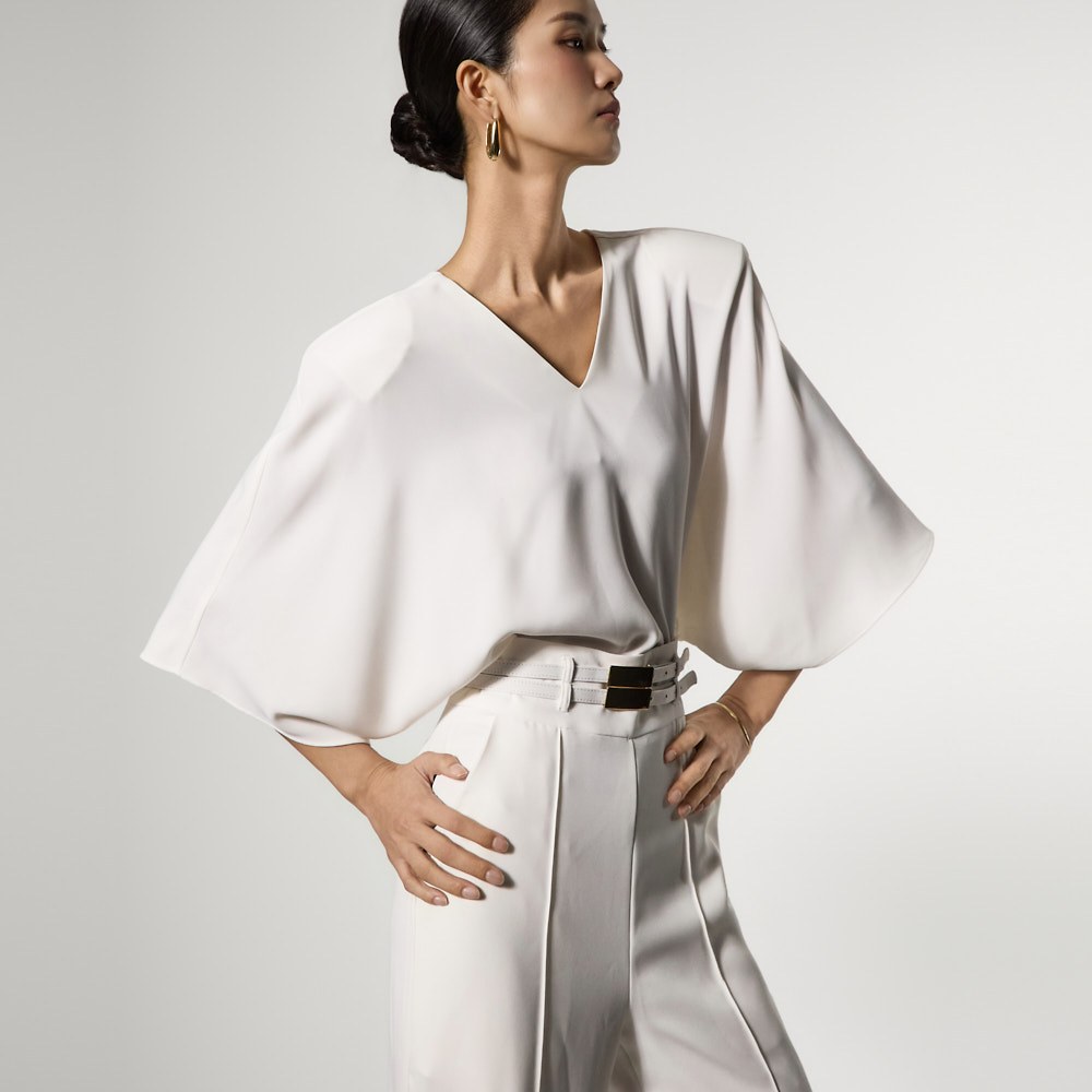 또한 가오리 소매 디테일로 넉넉한 핏을 완성하여