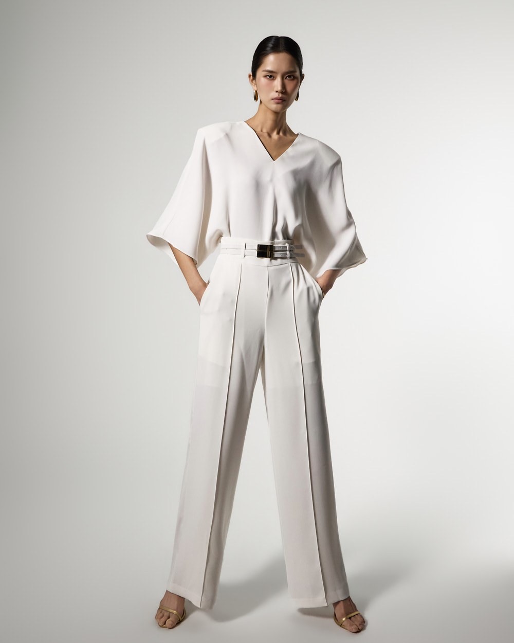 블라우스는 나그랑 핏으로 자연스럽게 흐르는 실루엣을 자아내며,