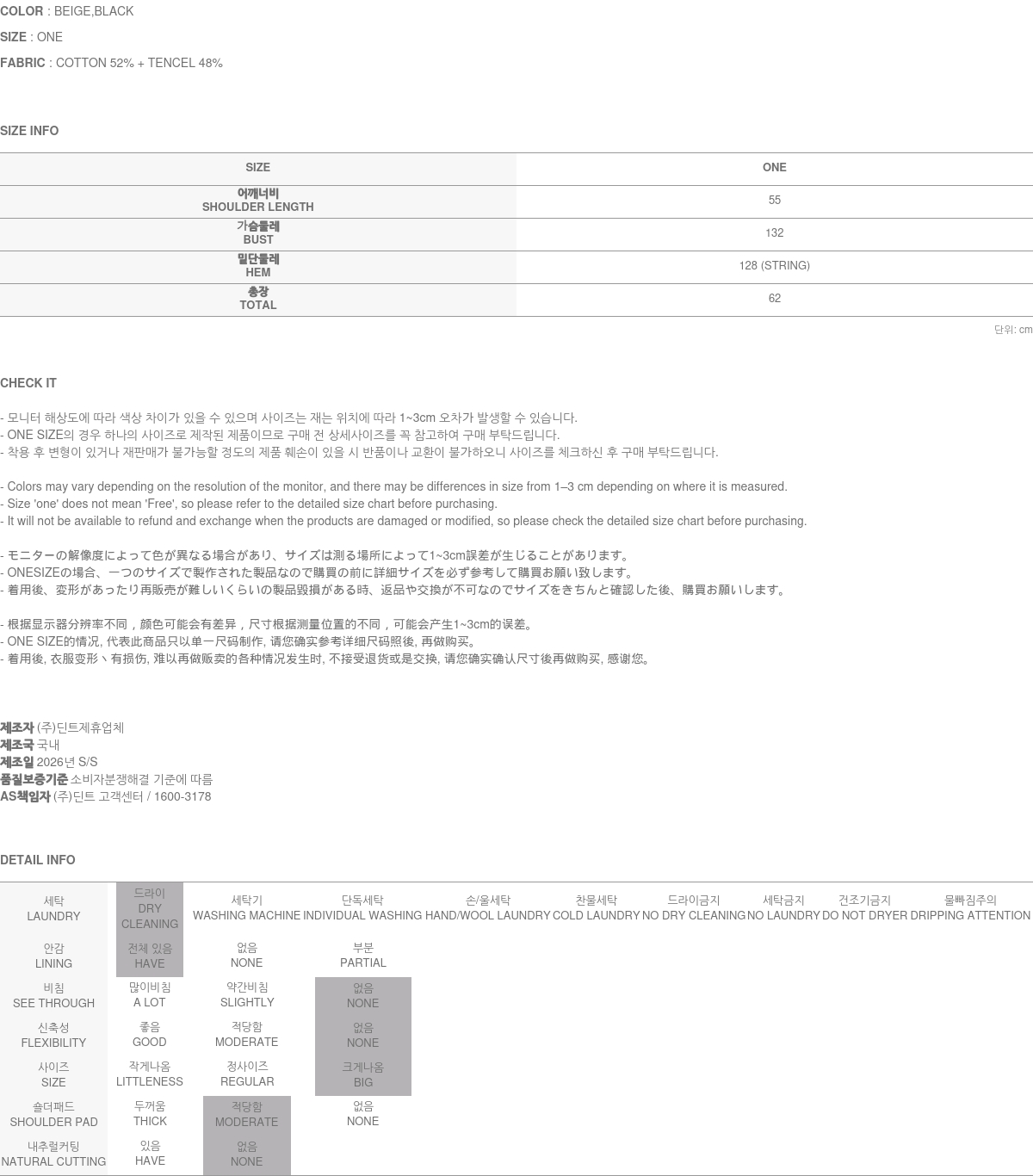 정확한 사이즈는 반드시 구매 전 상세 사이즈를 확인해 주시기 바랍니다.