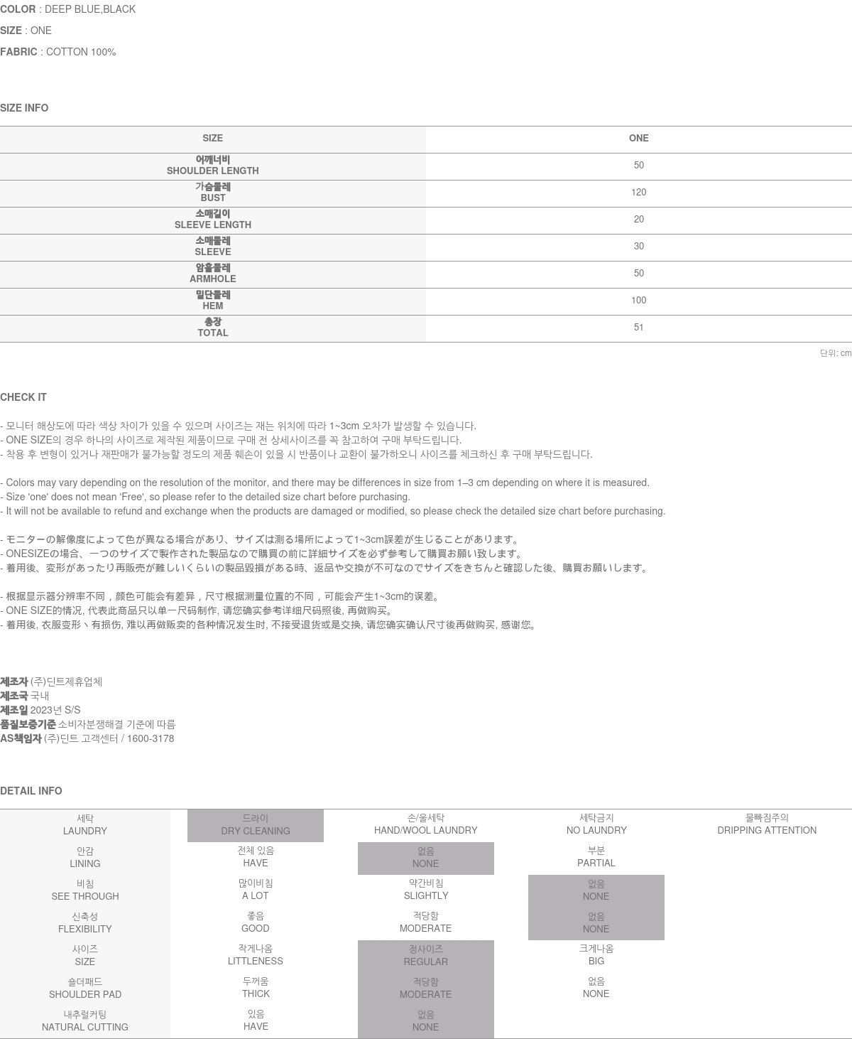 171CM 모델 ONE 사이즈, DEEP BLUE 컬러 착용하였습니다.