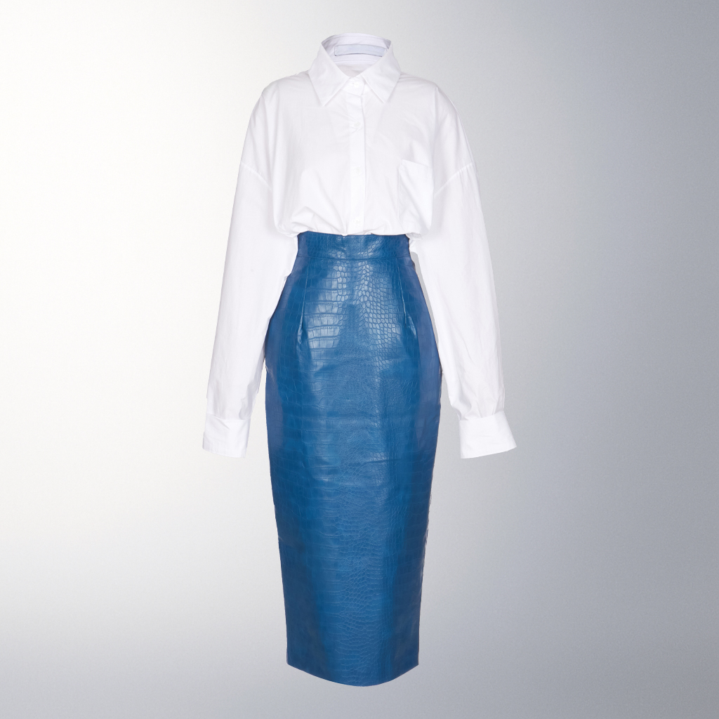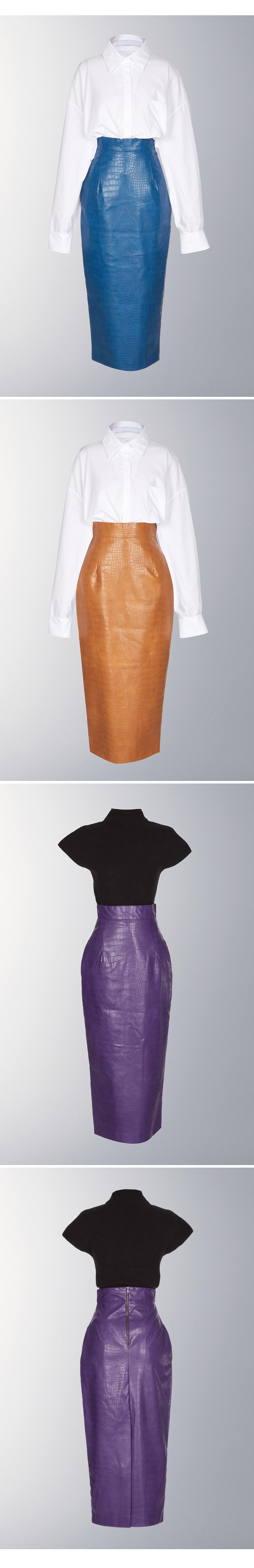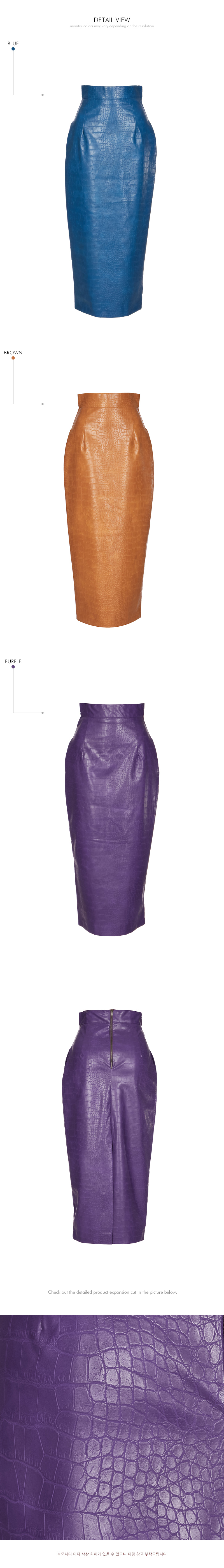 유니크한 텍스처가 돋보이는 레더 스커트입니다.
