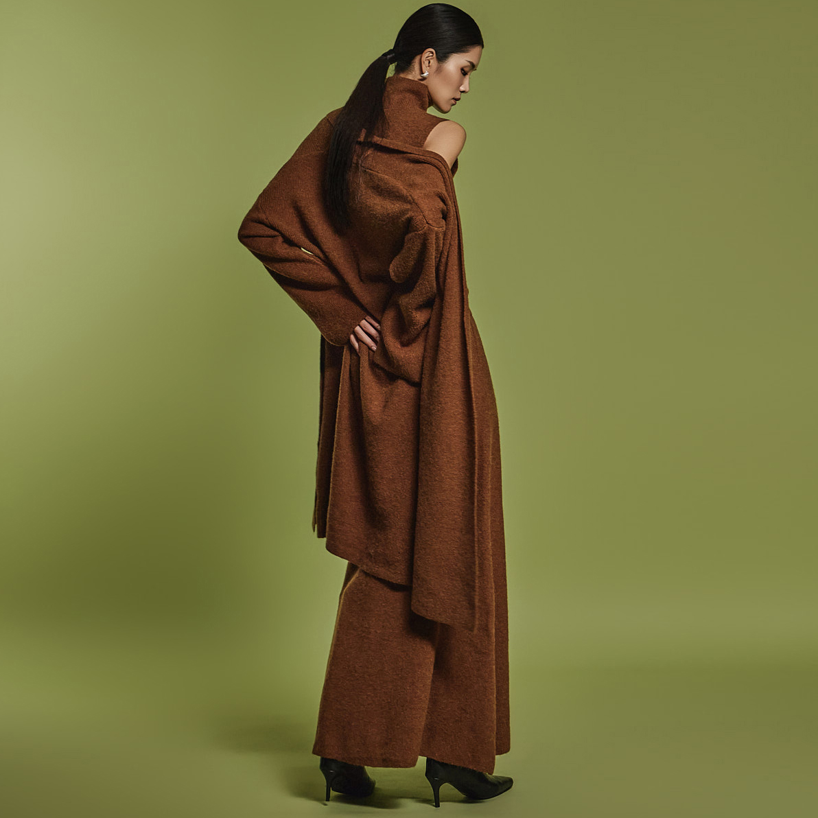 탑은 터틀넥 라인으로 세련된 넥라인을 돋보여드리며,