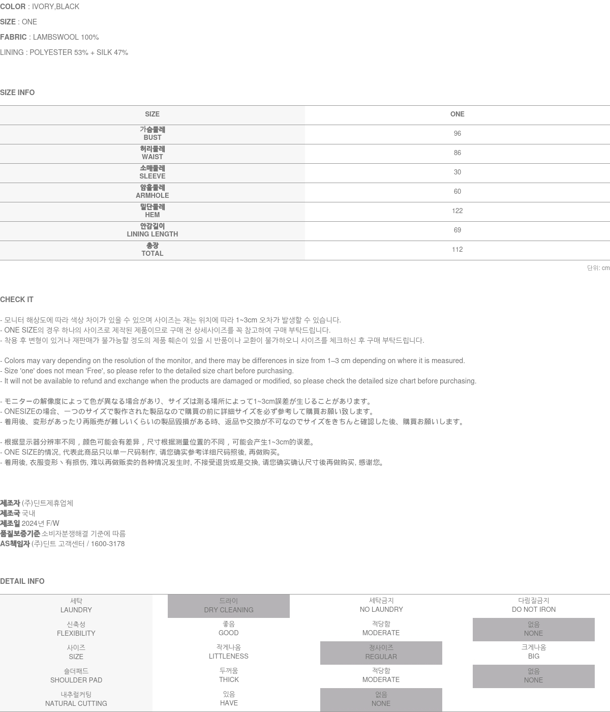 전체 울 소재감으로 시즌에 맞게 착용 가능하고
