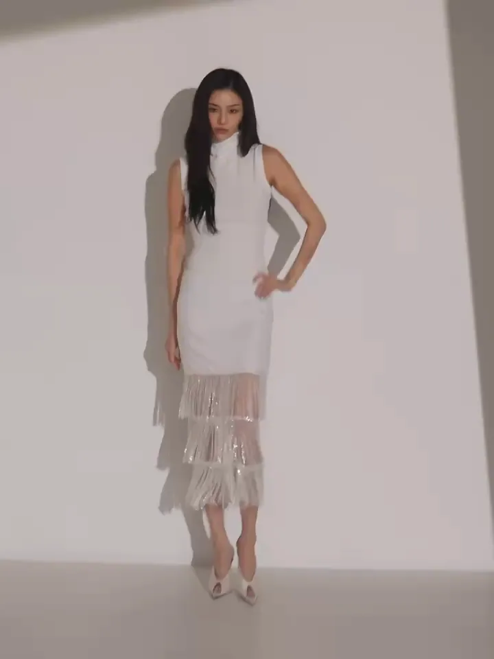 바디라인을 따라 슬림하게 떨어지는 H 라인의 원피스로