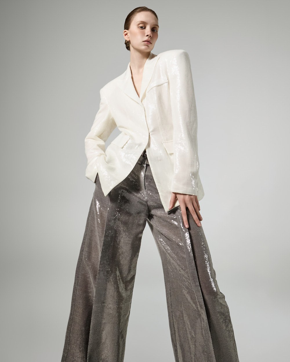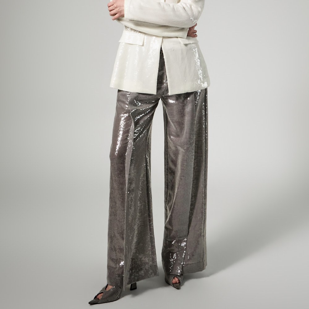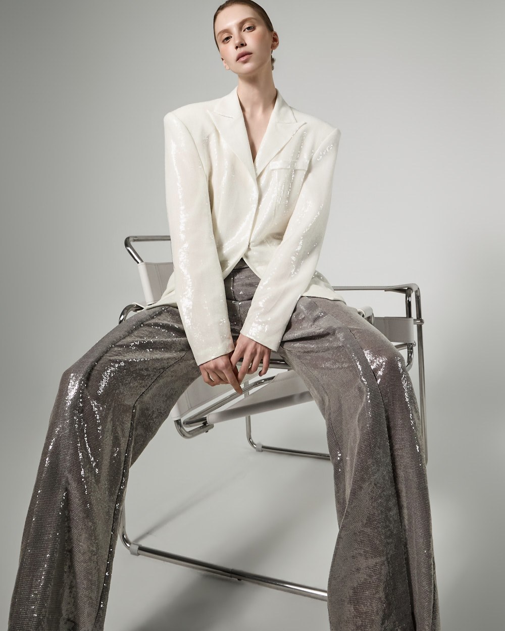 팬츠 전체에 더해진 섬세한 시퀸 디테일이