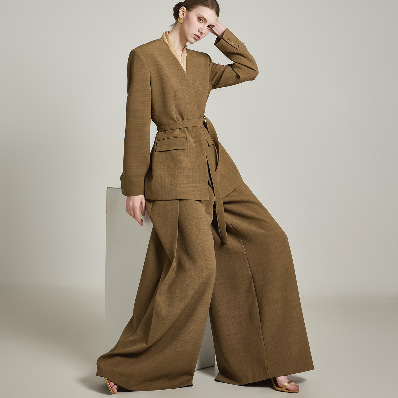 노카라 자켓으로 페미닌한 무드를 더했으며,