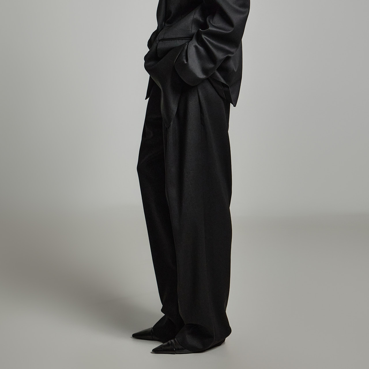 양 사이드 안쪽 밑단에 트임 디테일이 더해져