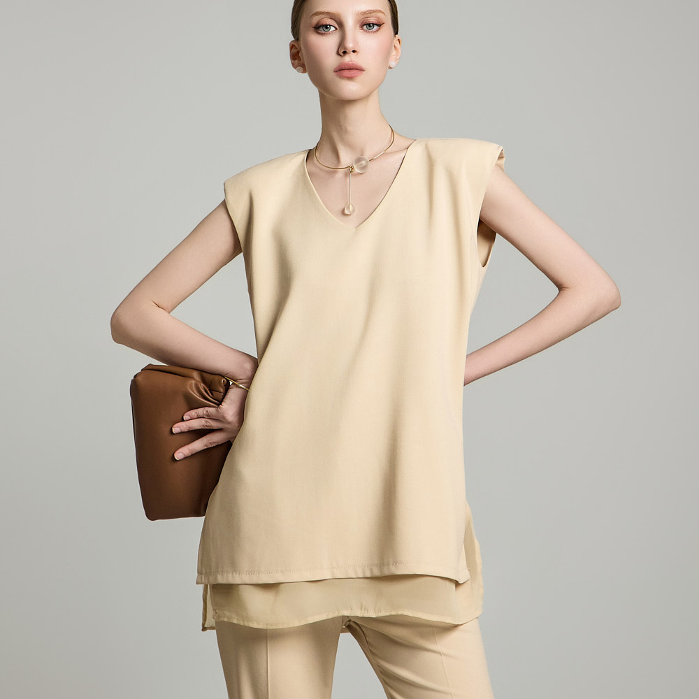 적당한 어깨 패드가 더해져 핏을 안정감 있게 잡아주며,