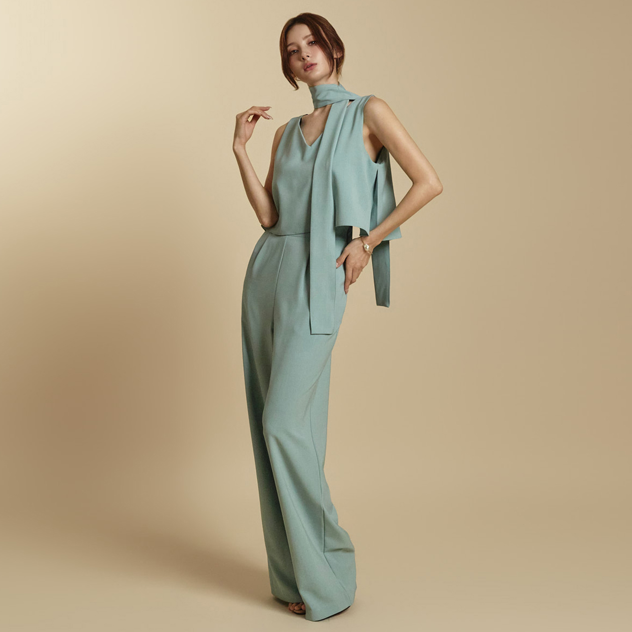 페미닌한 무드의 스카프 세트 점프수트입니다.