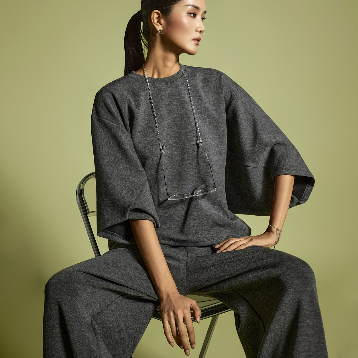 가오리핏 실루엣과 7부 소매가 자연스러운 여유로움을 더해주며,
