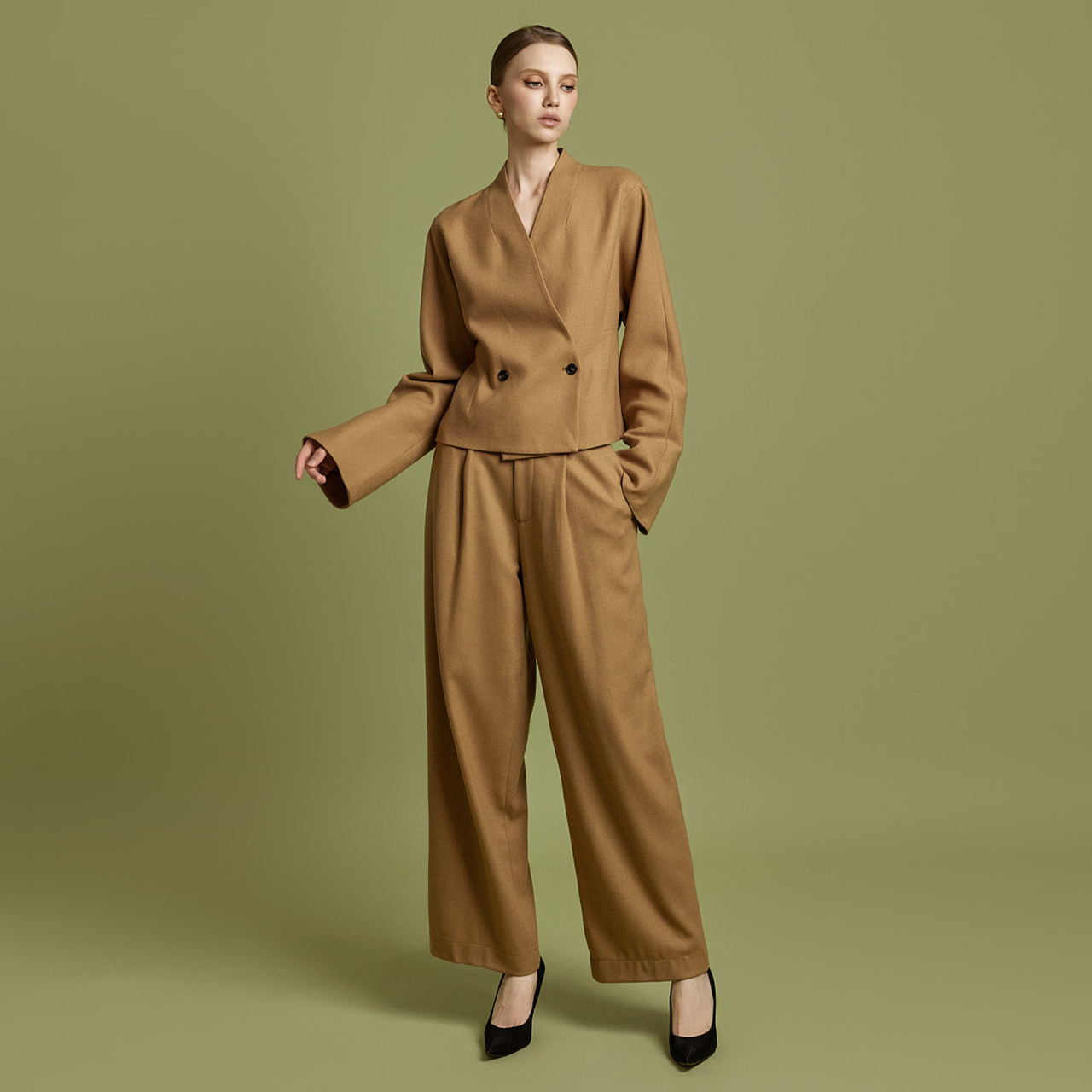 와이드핏 실루엣에 전면 핀턱 디테일을 더해