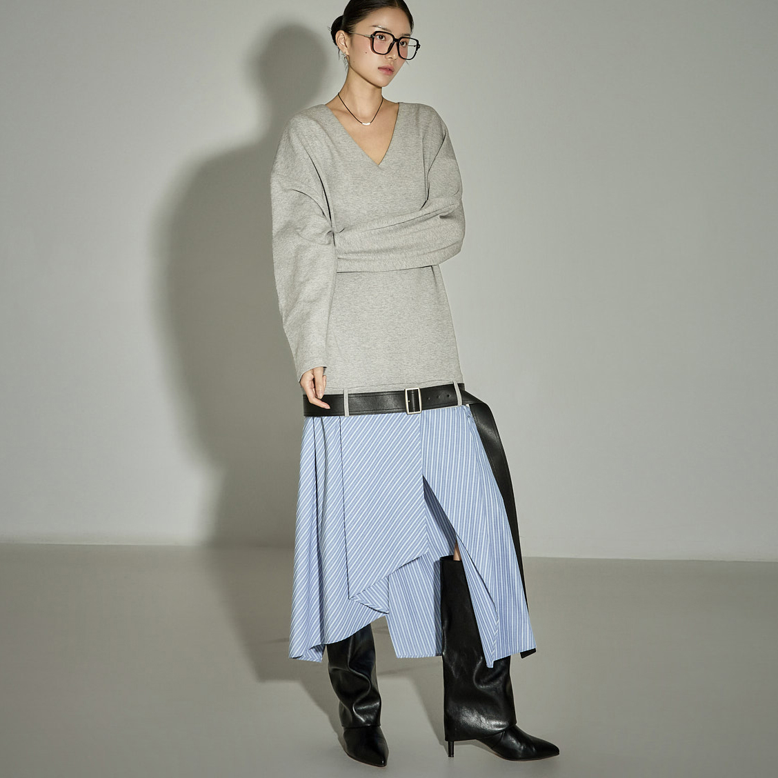 캐주얼한 무드의 벨트 세트 배색 원피스입니다.
