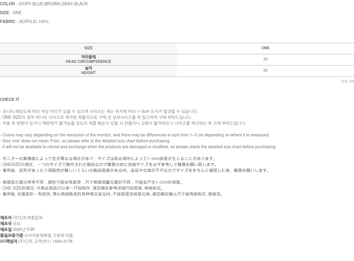 • 액세서리 및 잡화는 장시간 보관 및 착용 시 변색이나 변형이 될 수 있습니다.