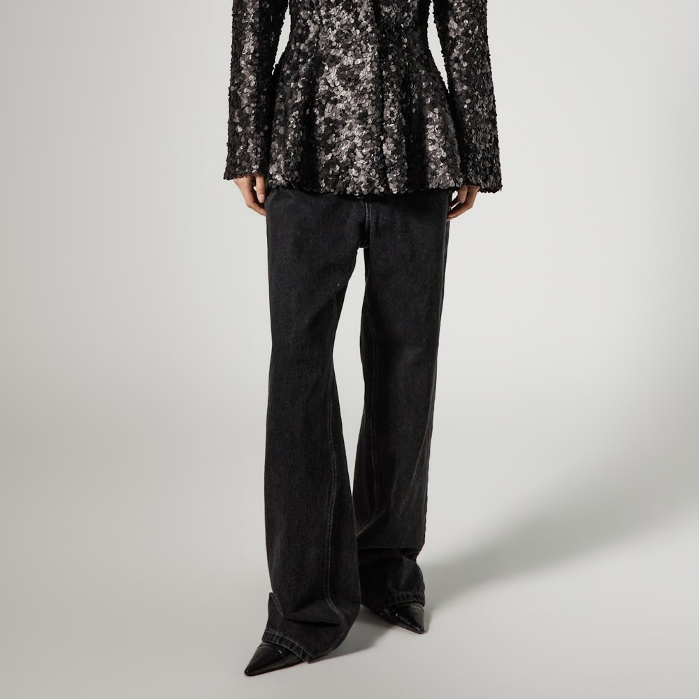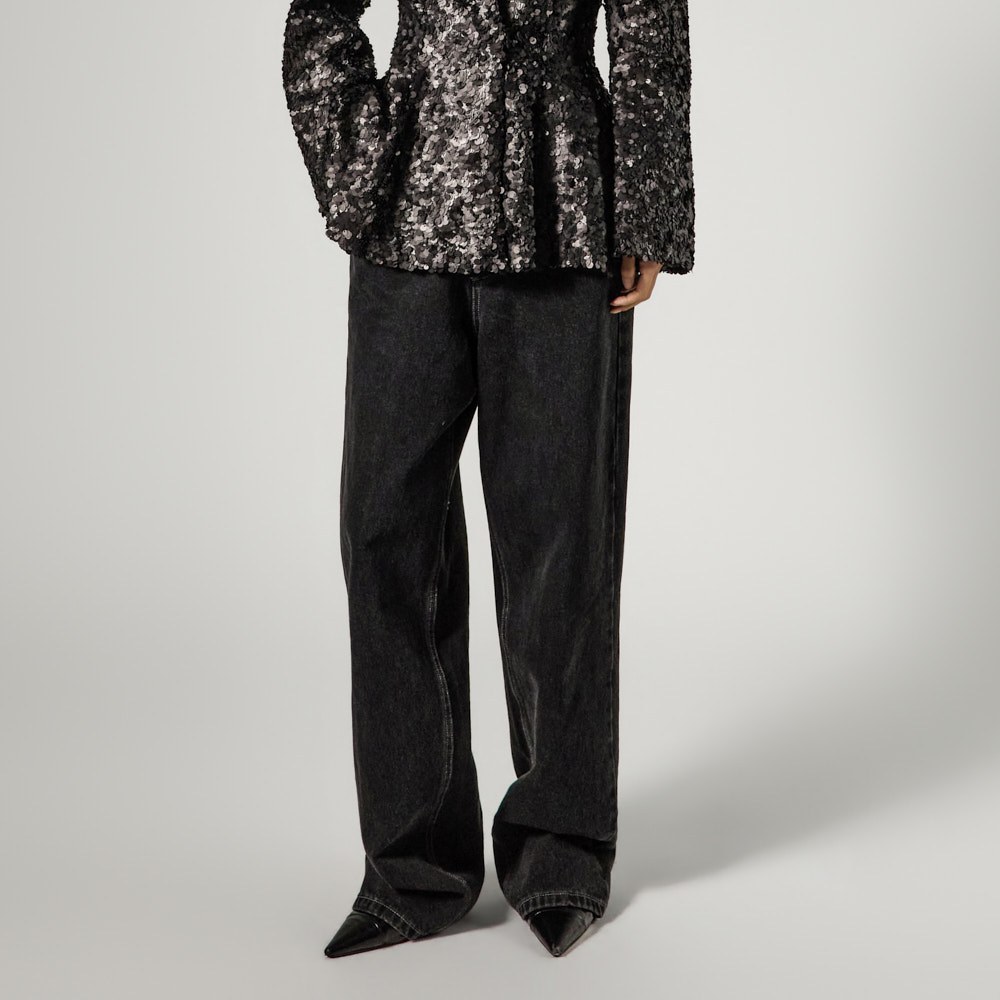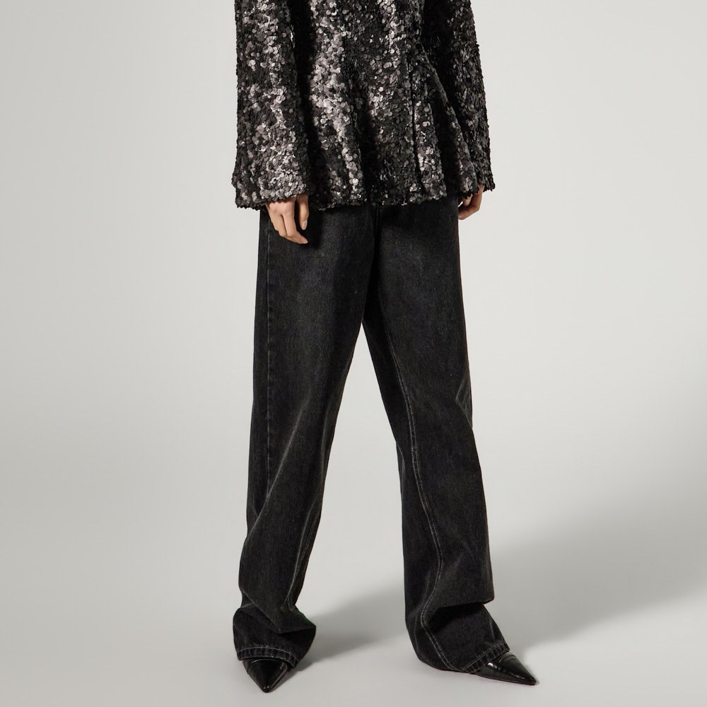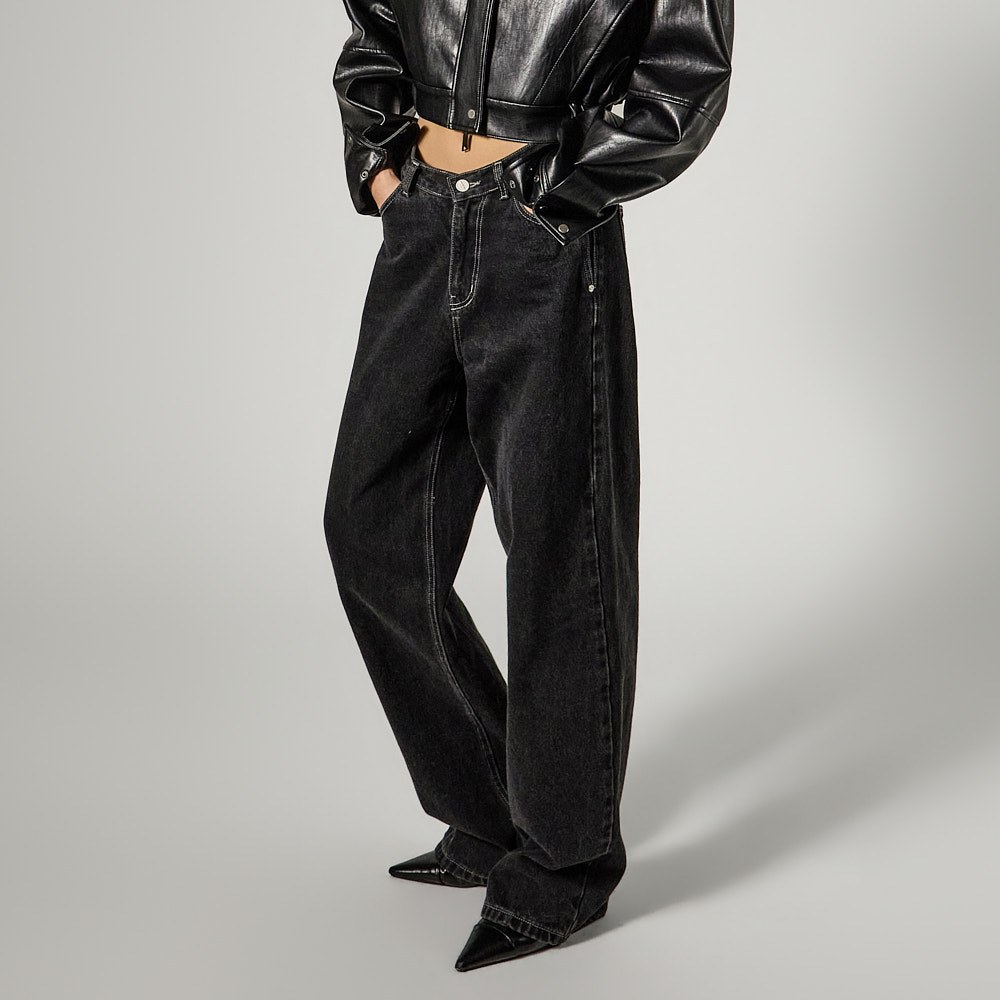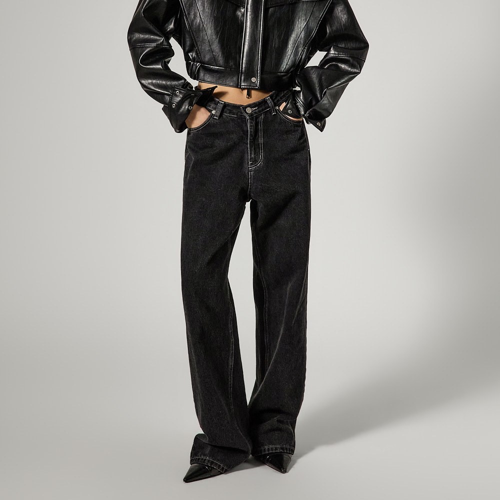 힙부터 밑단까지 깔끔하게 떨어지는 일자 와이드핏으로