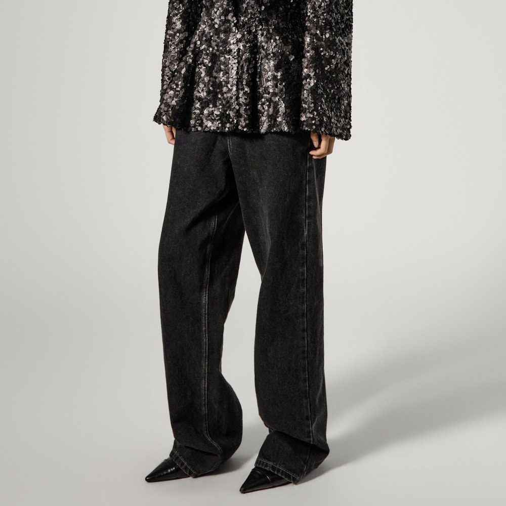 캐주얼한 무드의 블랙 와이드 진입니다.