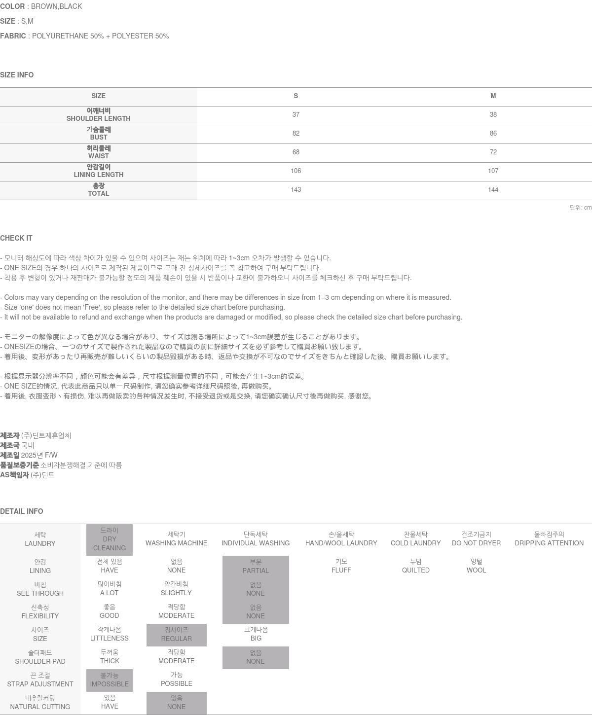 174CM 모델 S 사이즈, BROWN 컬러 착용하였습니다.
