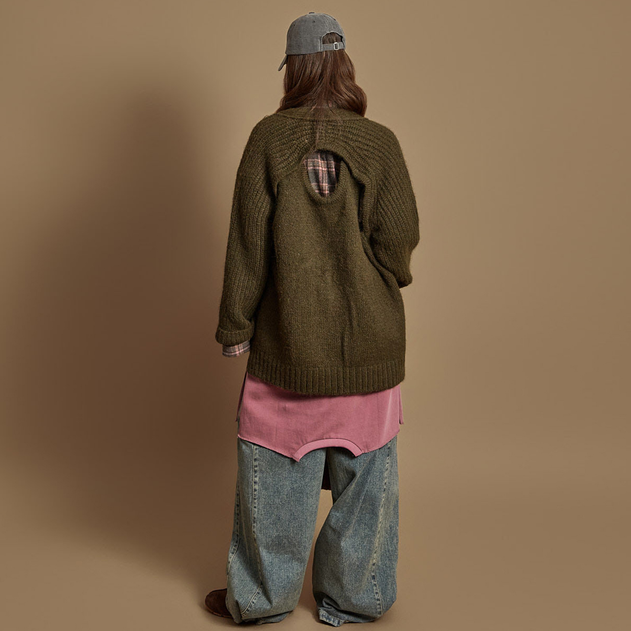 캐주얼한 무드의 백 트임 니트 가디건입니다.