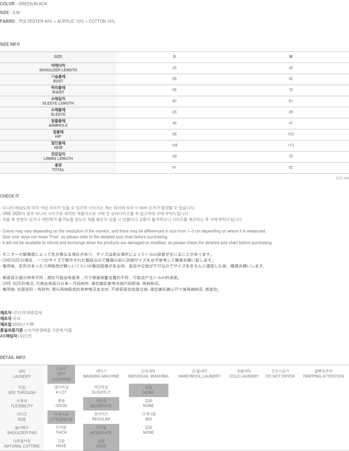 정확한 사이즈는 반드시 구매 전 상세 사이즈를 확인해 주시기 바랍니다.