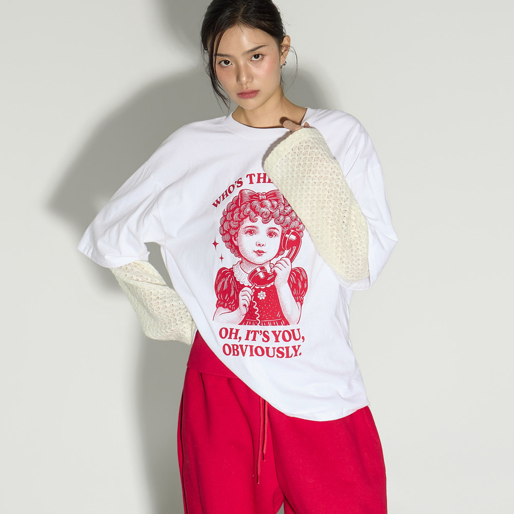유니크한 무드의 레이어드 슬리브 프린팅 탑입니다.
