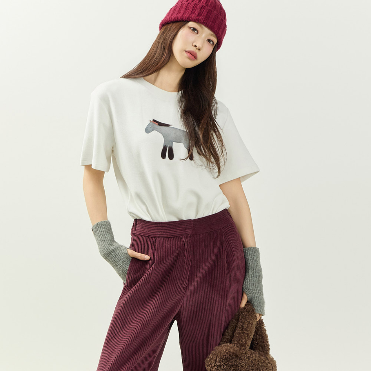 위트 있는 캐주얼 무드의 피치기모 탑입니다.