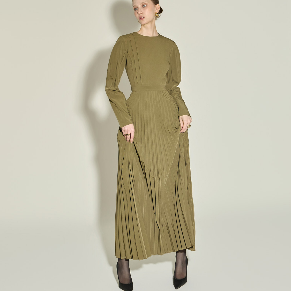 허리 라인 아래로는 잔잔한 플리츠 주름이 자연스럽게 퍼져