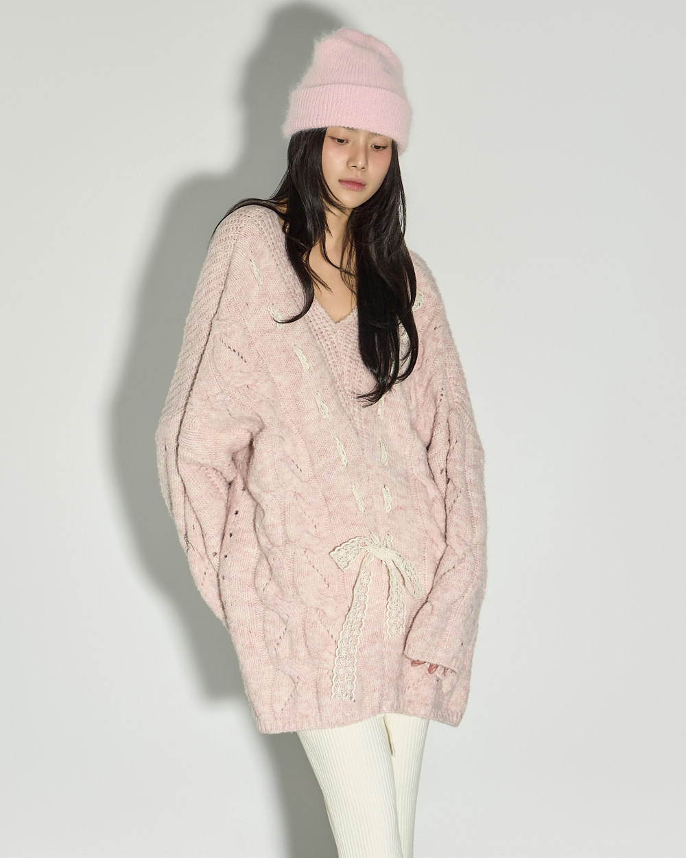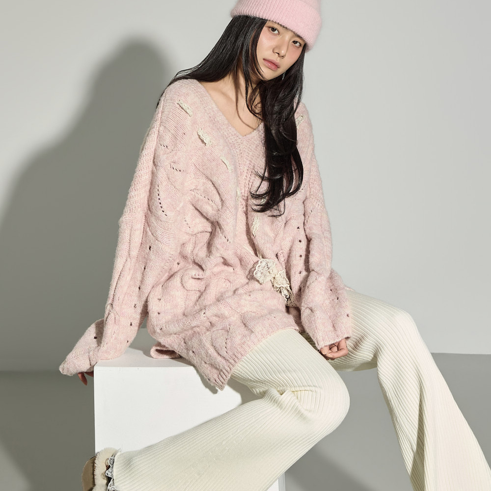 러블리하고 편안한 무드의 케이블 니트입니다.