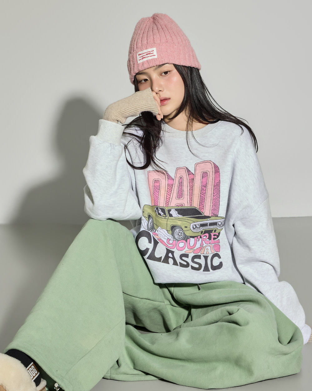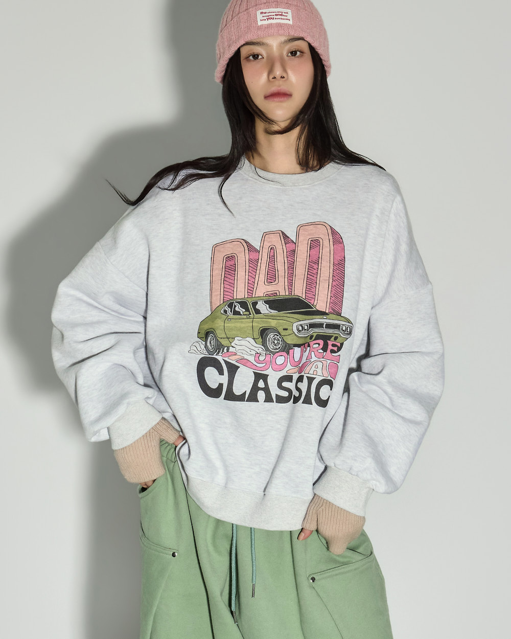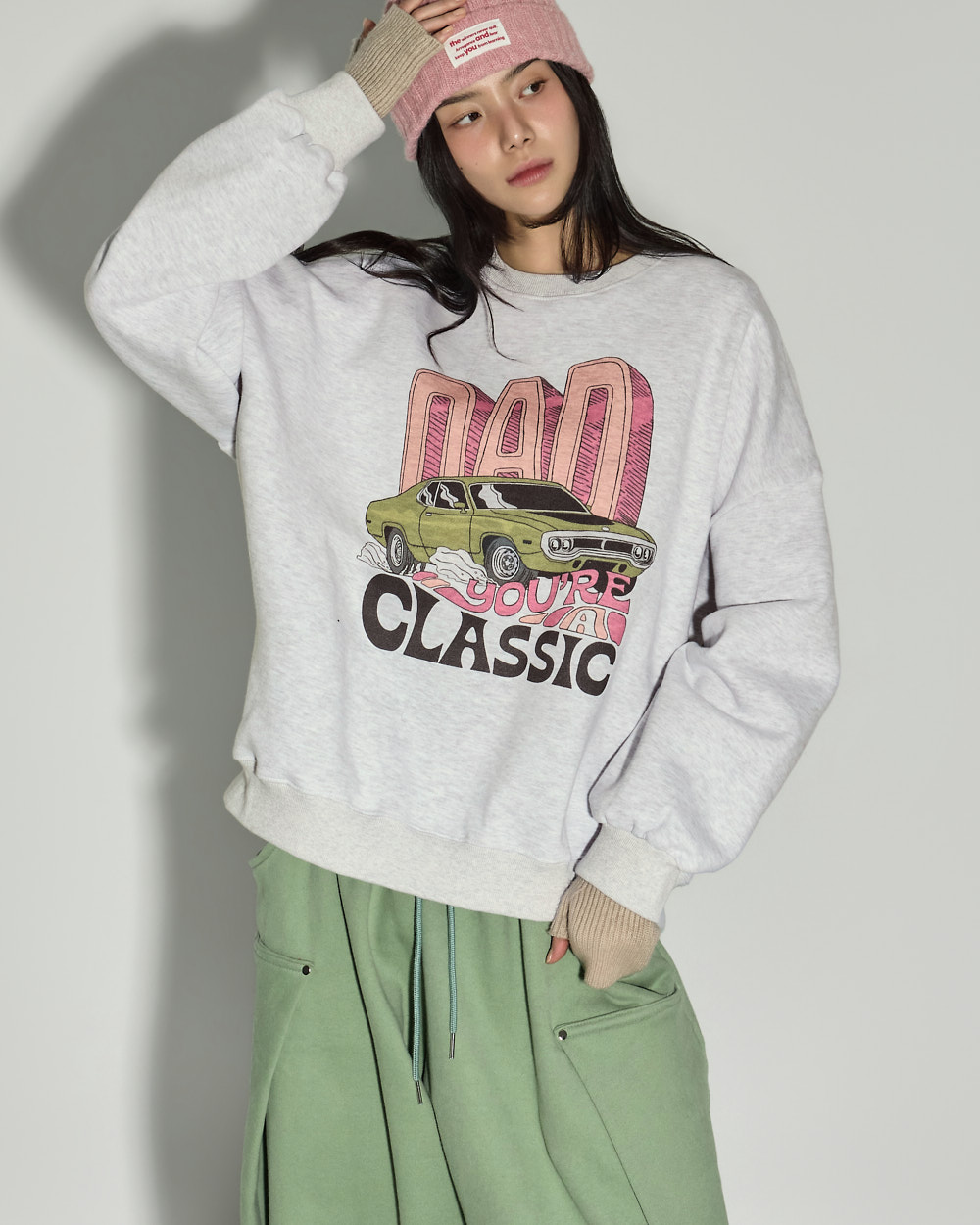 소매 밑단과 밑단 시보리 마감으로 안정적인 핏을 잡아줍니다.