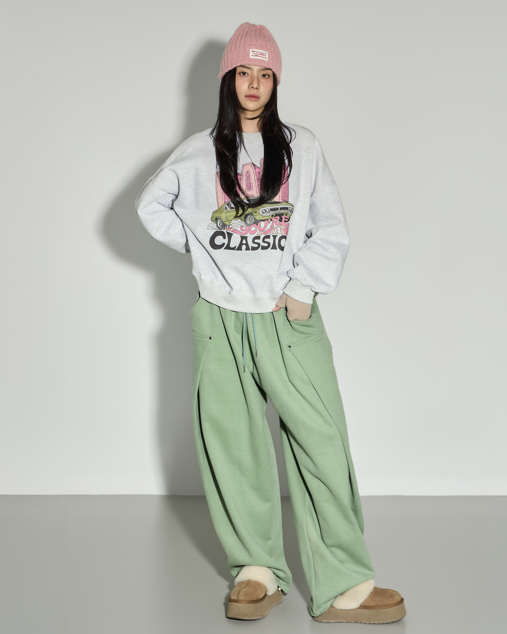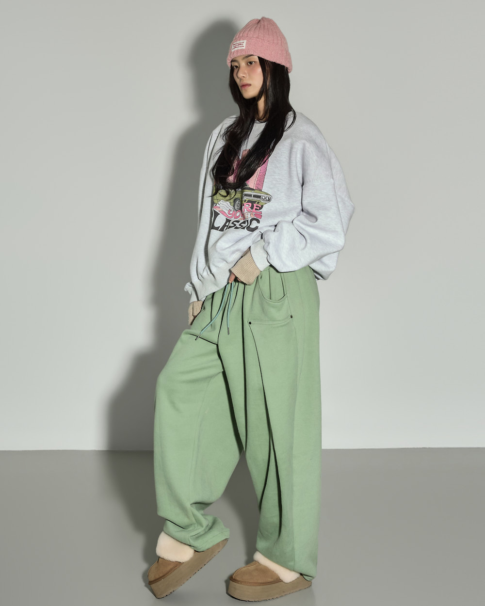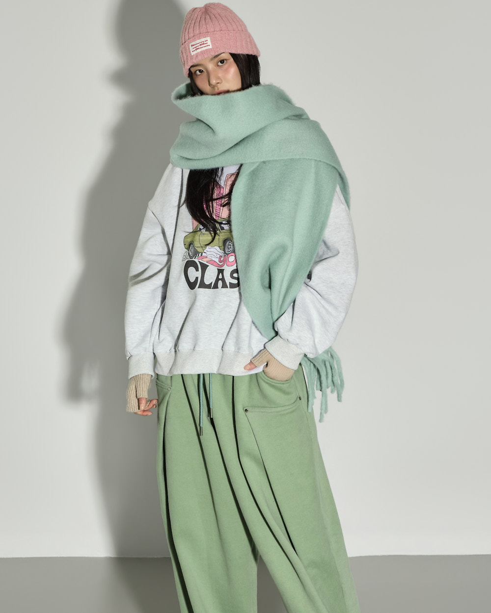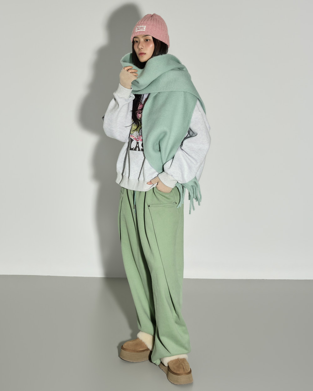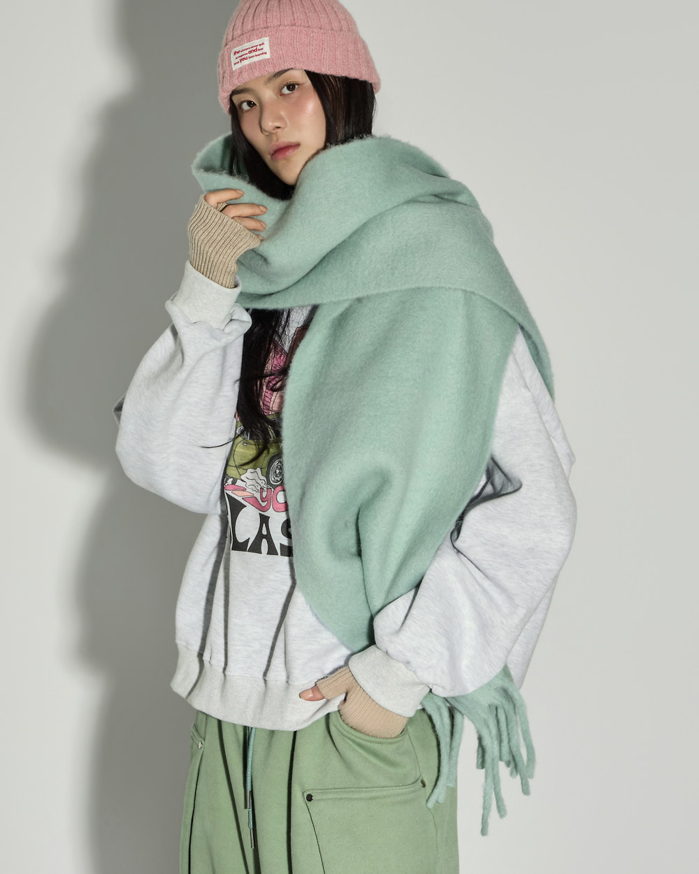 171CM 모델 ONE 사이즈, MELANGE GRAY 컬러 착용하였습니다.